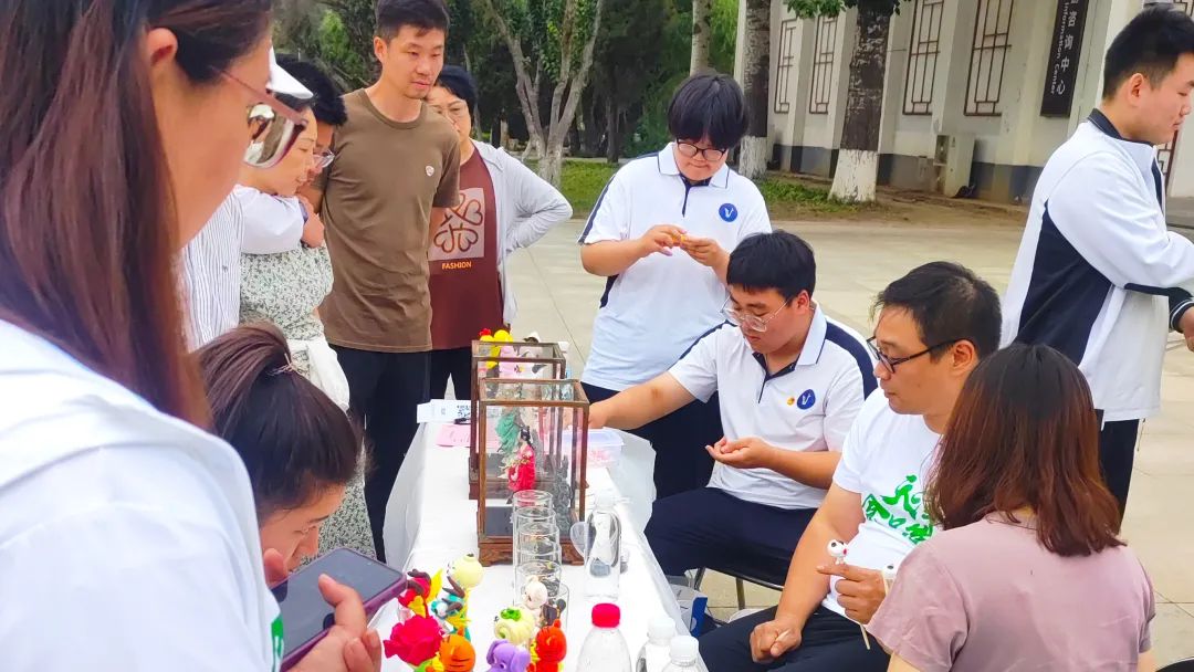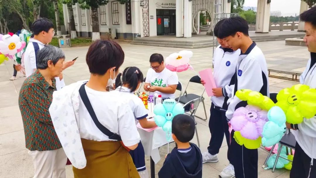 青年们为小朋友送上节日气球、现场制作面塑 集团团委提供