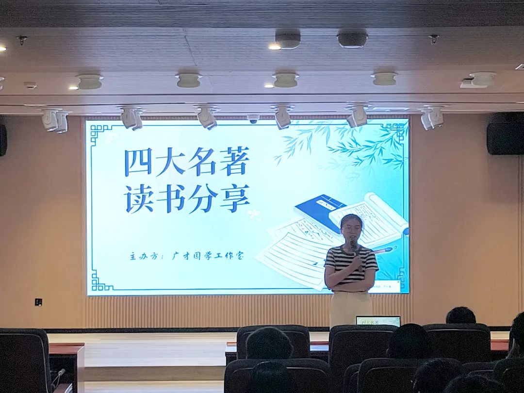 为进一步激发学生读名著、学名著、悟思想的热情,提高学生对中华优秀传统文化的深层认知。5月30日下午2时,广才国学工作室于图书馆四楼会议厅开展四大名著读书分享会活动,工作室张广才教授、专职教师盛楚云出席,教育学院2021级、2022级部分学生参与。