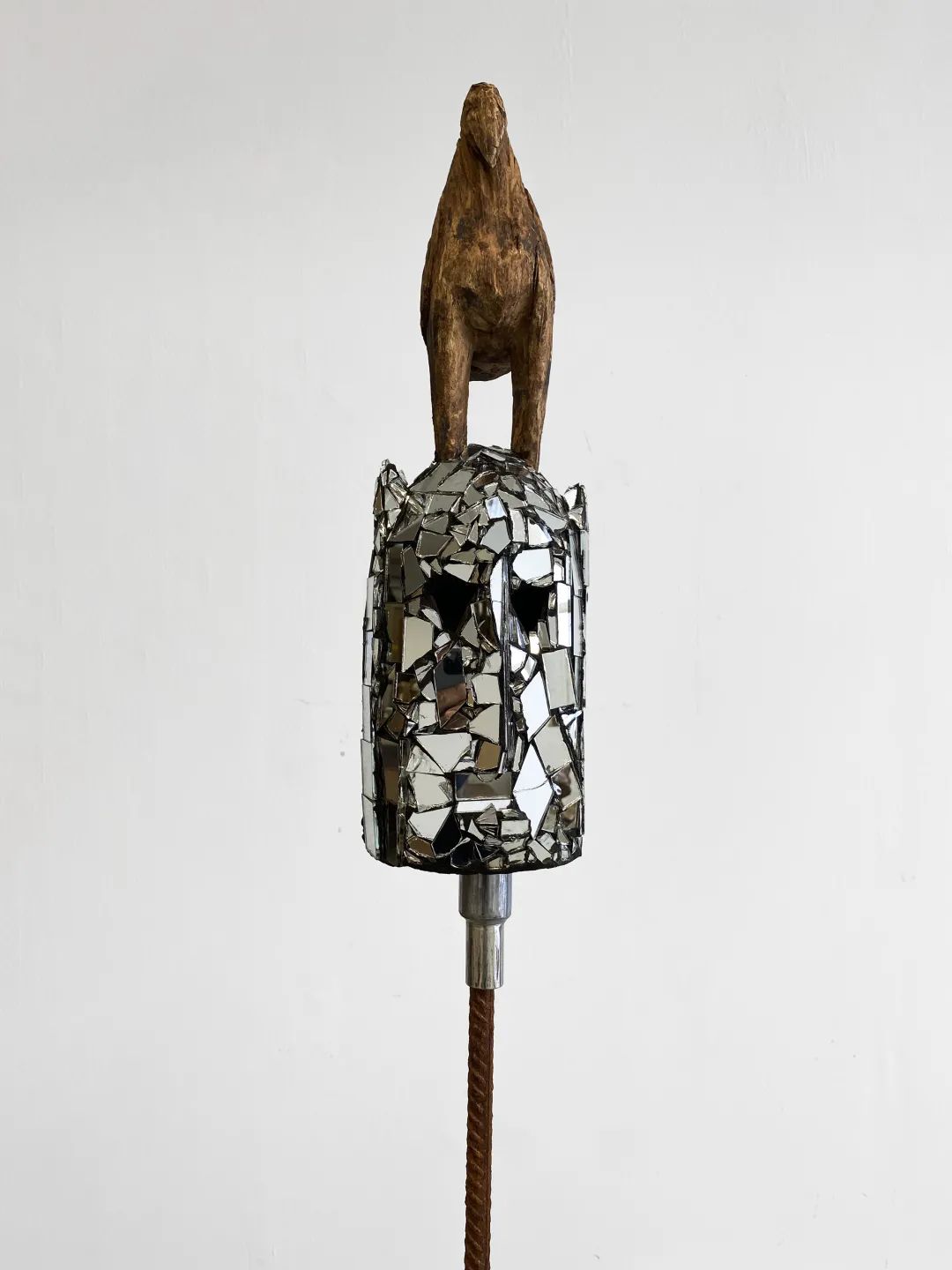 47 x 17 x 16 cm(面具)、158 x 25 x 25 cm(立柱)、205 x 25 x 25 cm (总体)