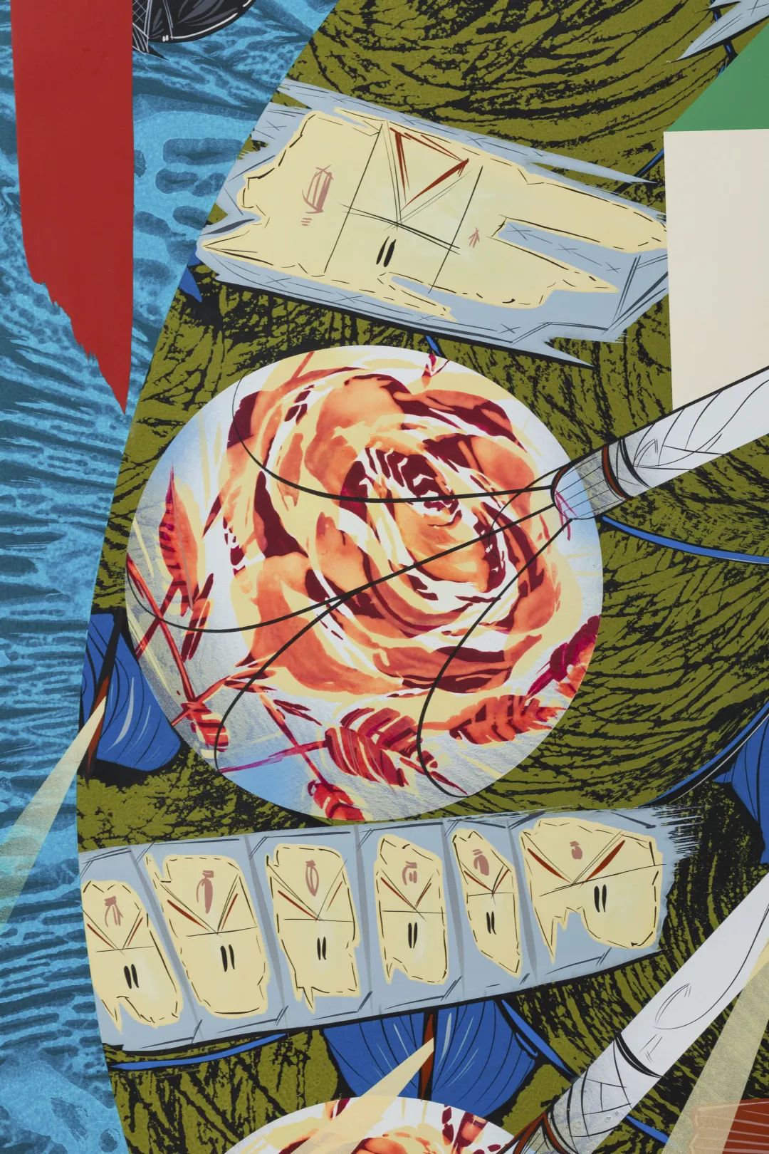 2023 亚麻布面油彩、丙烯、拼贴和丝网印刷