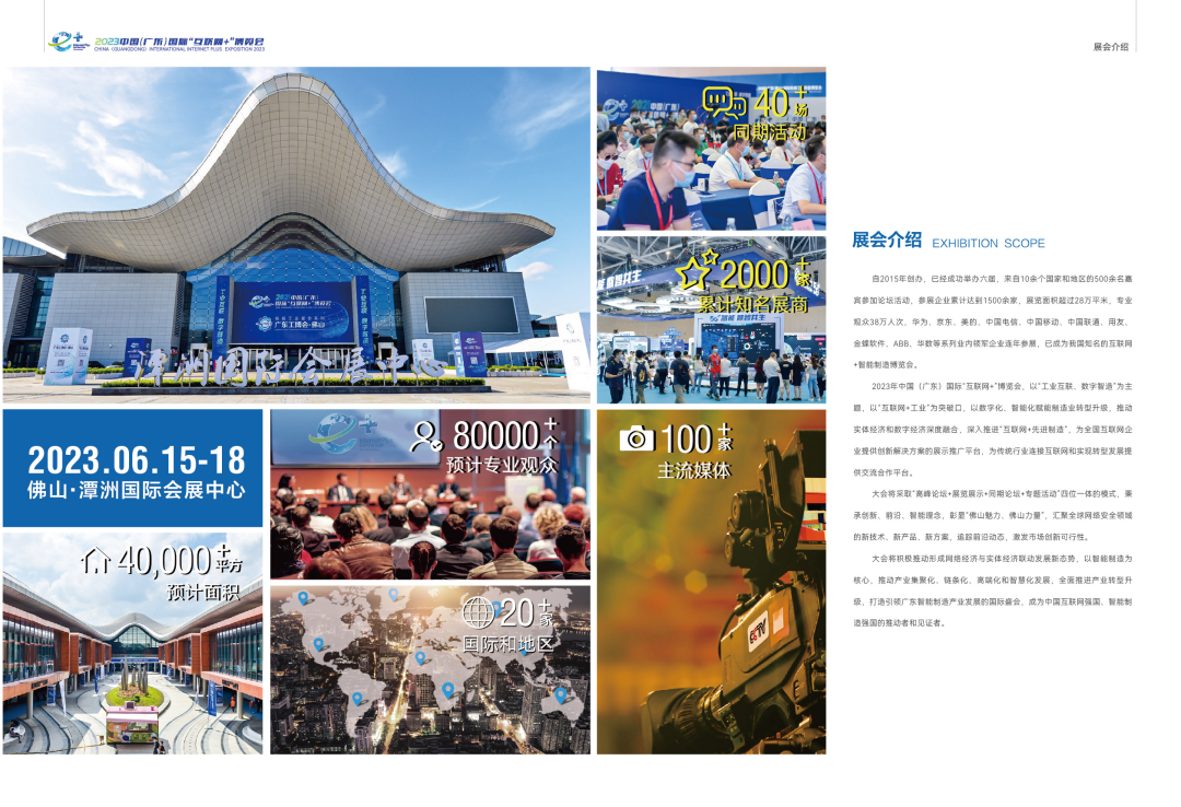 由中国国际贸易促进委员会广东省委员会主办,中国国际贸易促进委员会佛山市委员会、佛山中德工业服务区管理委员会、天津振威国际会展集团股份有限公司联合承办的2023中国(广东)国际“互联网+”博览会将于2023年6月15-18日举行。博览会设有工业互联网、大数据及云计算、数字化智能工厂、互联网前沿技术等四大展区,集中展示互联网及新一代信息通信领域的先进技术及成果,展示5G应用前沿,展示5G向6G升级的历年及成果。我们诚挚邀请您莅临佛山潭洲国际会展中心参观参展。