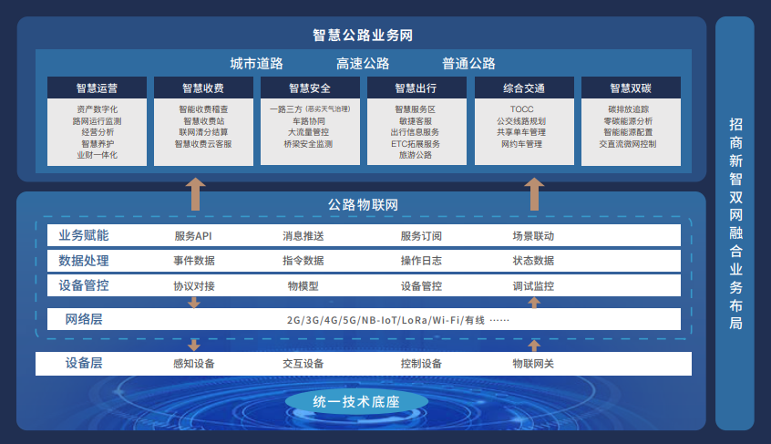 招商公路旗下招商新智基于公路物联网架构,融合大数据、云计算、AI、V2X、车联网等技术,全方位赋能“智慧路网”运行。本次展览重点介绍招商新智在推进智慧路网建设上打造的一系列场景化解决方案和成果,包括全天候安全通行保障、智慧收费站、高速公路运营精益管理等,助力高速公路数字化转型发展,构建安全、便捷、高效、绿色的现代路网运行体系。