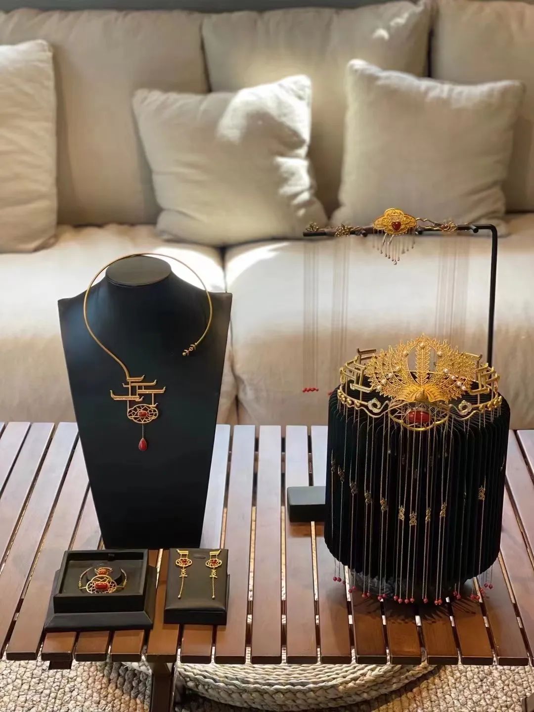 从古至今历经千百余年,婚嫁习俗始终是国人无比重视的传统,包含着从出生到青春豆蔻成长的感悟,更象征着对未来即将开启的婚后生活的美好憧憬和希冀。这一套饰品里,有曾经的记录,有对未来的希望,是印记,是对成长的感悟,也是对人生的美好祝愿。