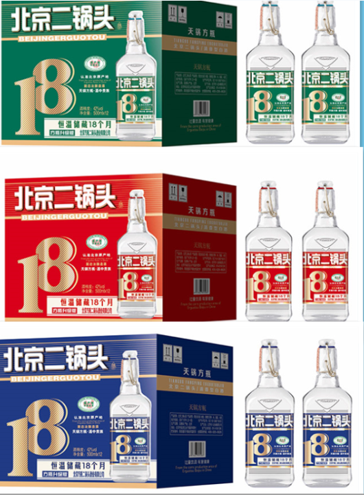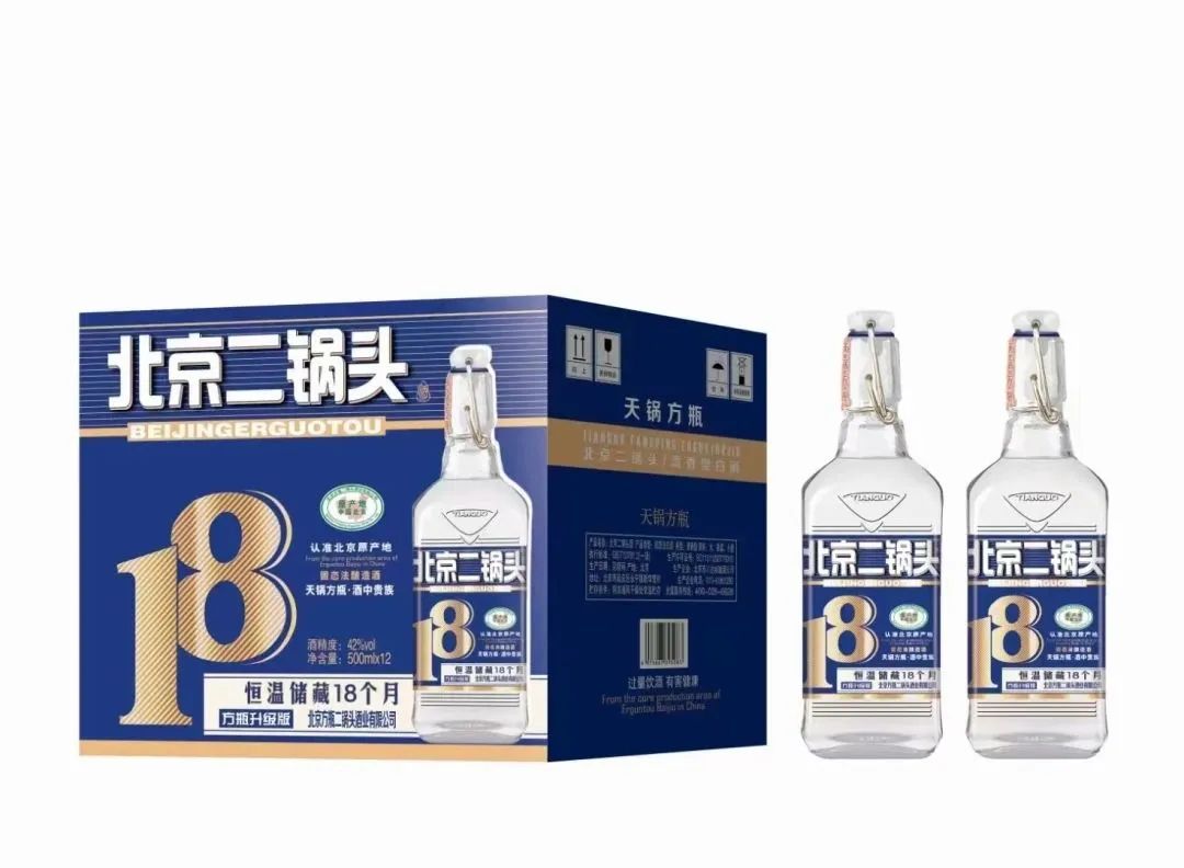 为了便于消费者识别天锅二锅头酒的原酒储藏时间,同时,为了向消费者承诺我们的产品品质,我们以存放的时间月份给产品命名,分别为天锅方瓶18、天锅方瓶28、天锅方瓶38等,这是二锅头系列酒中一个以原酒储藏时间来命名的产品。