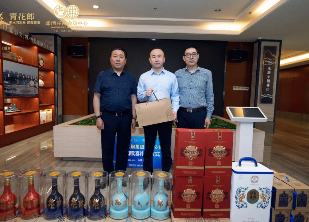 永钢集团黄总(左)青花郎事业部赵总(中)真保源商贸张总(右)