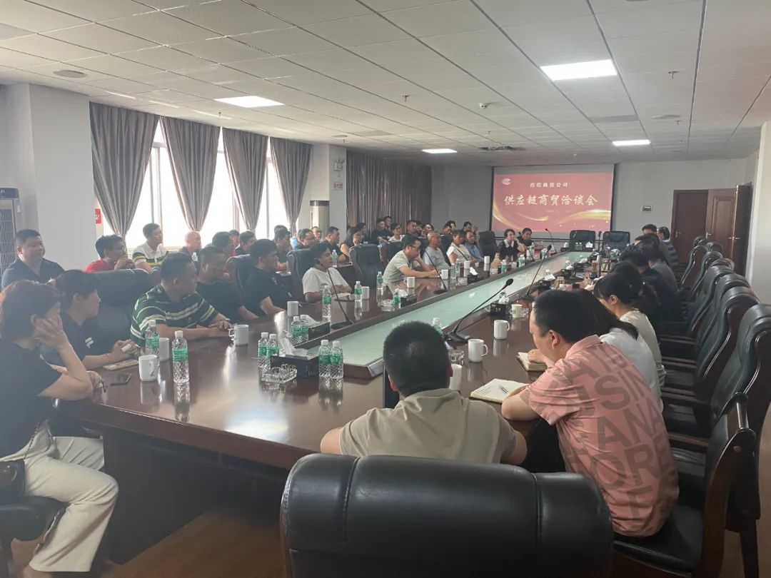 为加强紧密合作,促进与供应商之间的交流与沟通,2023年5月25日百信商贸公司召开供应链商贸洽谈会,玉溪市红塔区供销社、百信商贸公司及80家合作供应商代表出席会议。