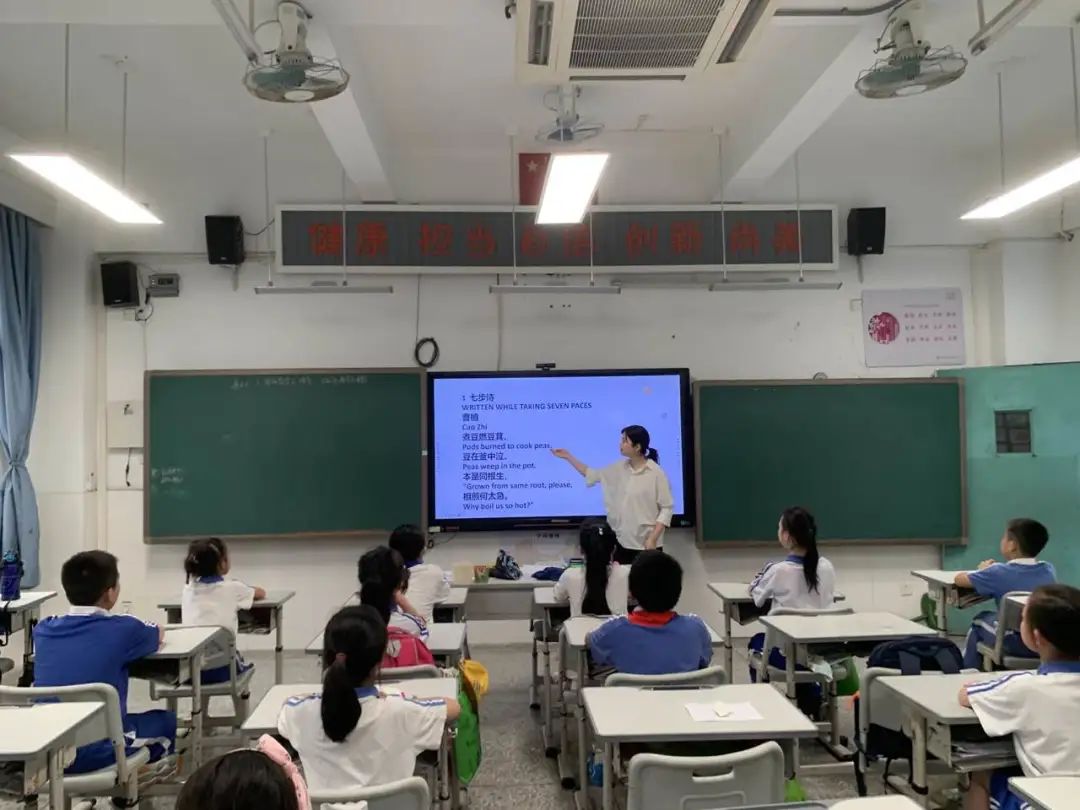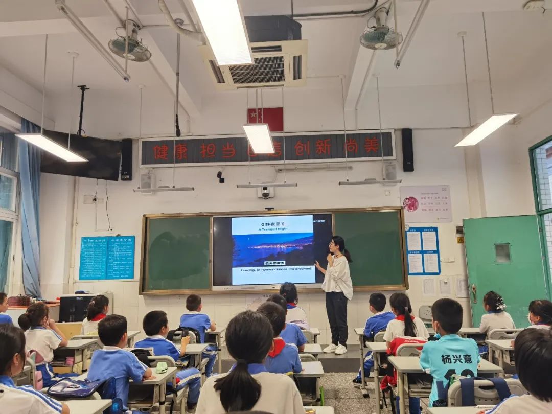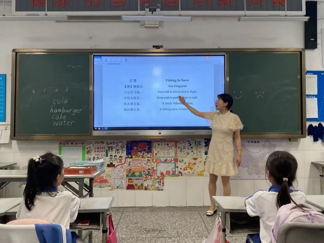 英语老师们针对所任教年级孩子的学情,为本年级学生认真筛选了三首精读英文版古诗词。在充满诗意的课堂上,同学们分别从了解古诗词的诗人、创作背景等方面感受了不同古诗所表达的不同情感,从而感受到诗中的意境之美。