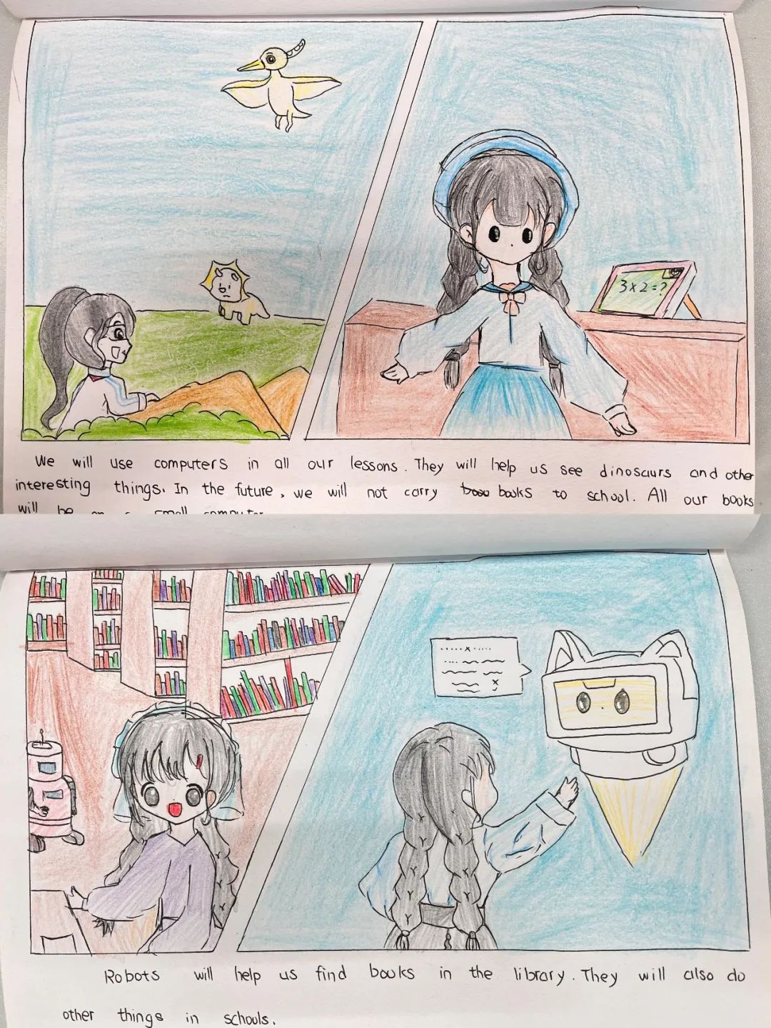 光读绘本还不过瘾,中高年级的孩子还当上了绘本创作家,每一笔每一画都展示着小作家们的创作热情以及专注精神。让我们一睹他们作品的风采吧!