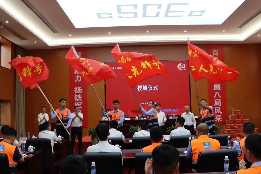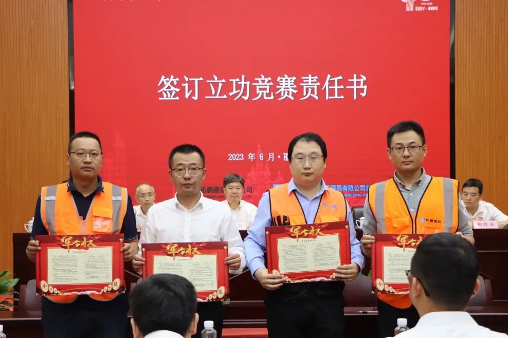 会上,与会领导为竞赛突击队进行授旗,陈大权宣读本次立功竞赛实施方案的主要内容,各参建单位代表签订竞赛责任状并作表态发言。