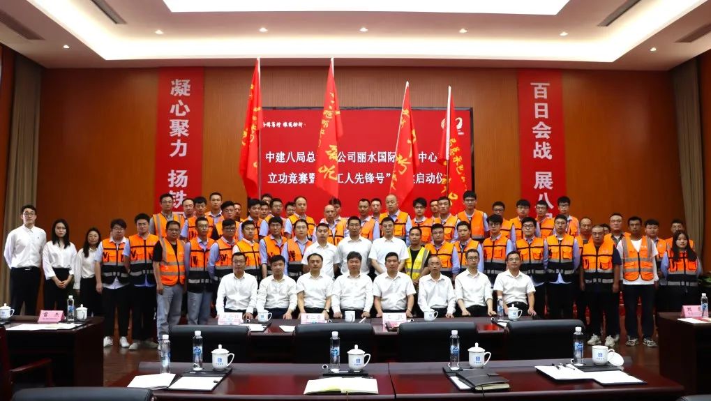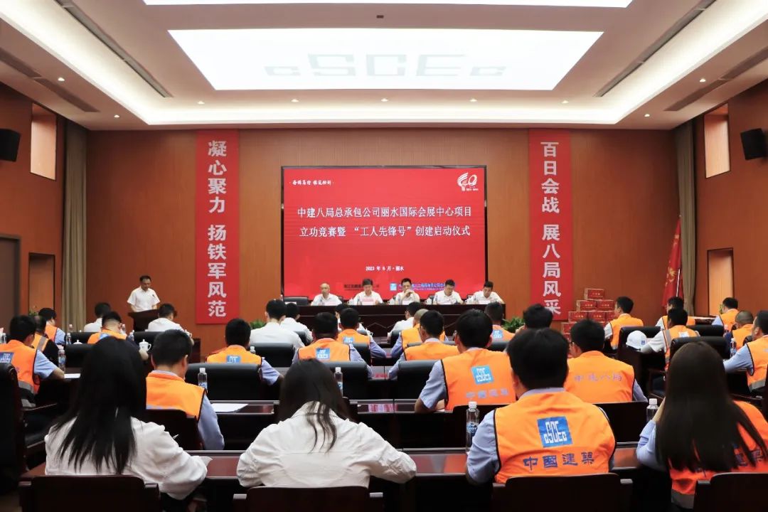 6月1日,中建八局总承包公司丽水国际会展中心项目召开立功竞赛暨“工人先锋号”创建启动仪式。开发区实业发展集团有限公司副总经理姚建波,丽水南城新澜开发建设有限公司副董事长蔡均瑞,浙江拓鹏建设有限公司总经理柳根华,中建八局总承包公司党委副书记、工会主席袁建勋,首席专家张文拴,第五分公司党总支副书记、执行总经理陈大权,装饰分公司党总支副书记、执行总经理王二亚参加活动。活动由第五分公司总工程师余少乐主持。