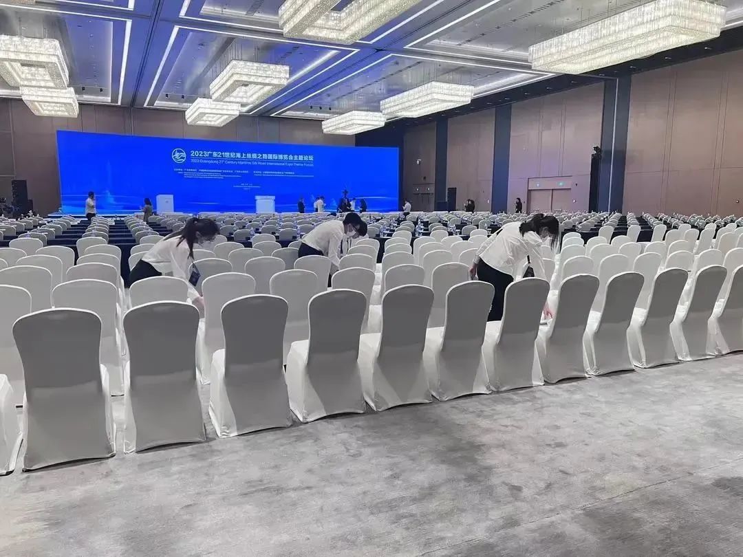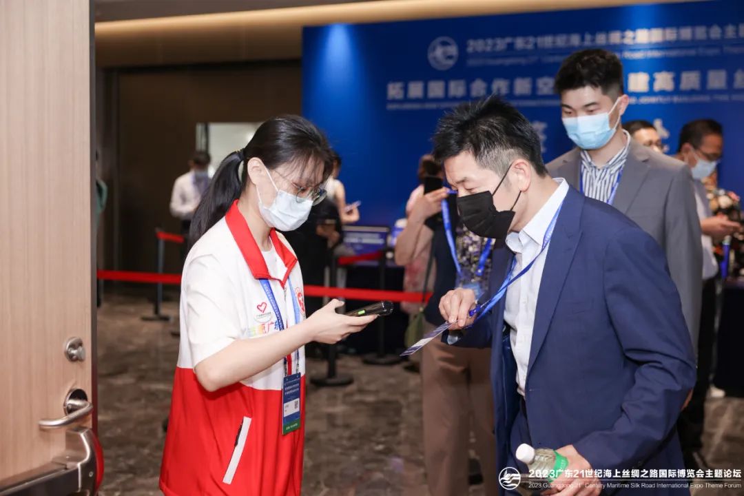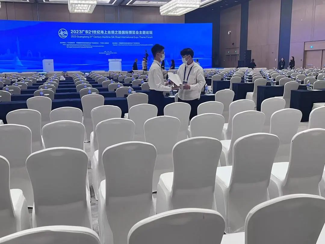 6月1日,团市委联合广州市贸促会、广东财经大学,共同组织65名青年志愿者,在越秀国际会议中心协助做好2023广东21世纪海上丝绸之路国际博览会主题论坛(简称“海丝博览会主题论坛”)会务筹备、路线指引、嘉宾接待、后勤保障、安全保障等工作,助力大会圆满成功。
