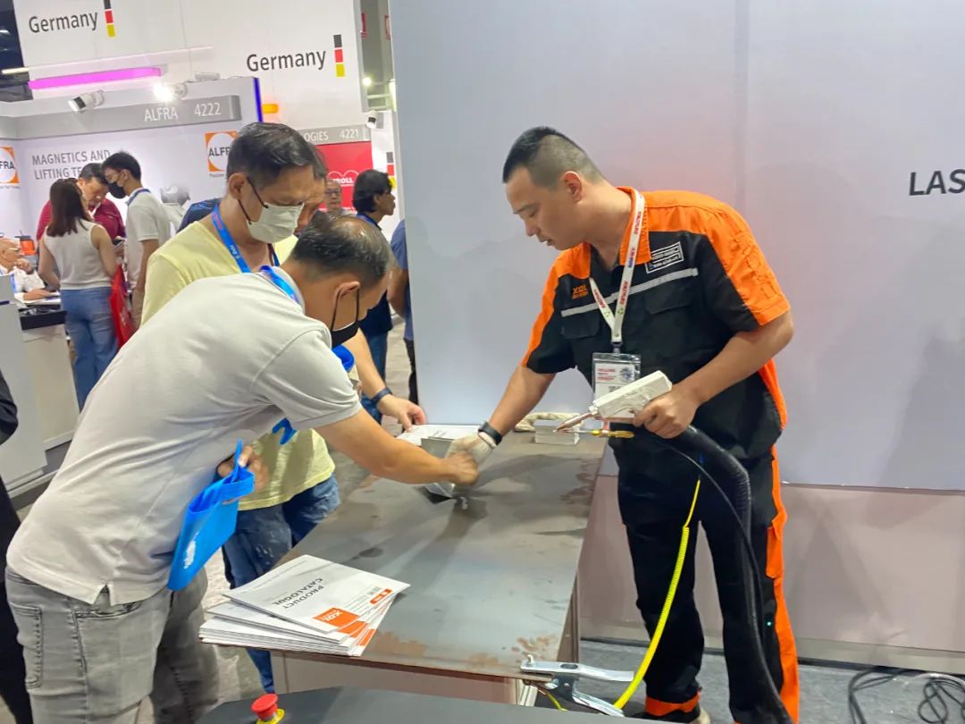 此次展会,鑫全利激光激光携先进的激光切割机、激光焊接机及精美的样品隆重登场,受到东南亚采购商的热烈欢迎,接下来就跟着小编的镜头来了解一下现场吧!