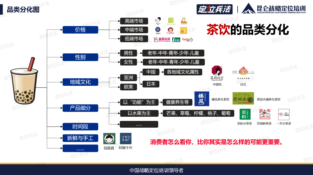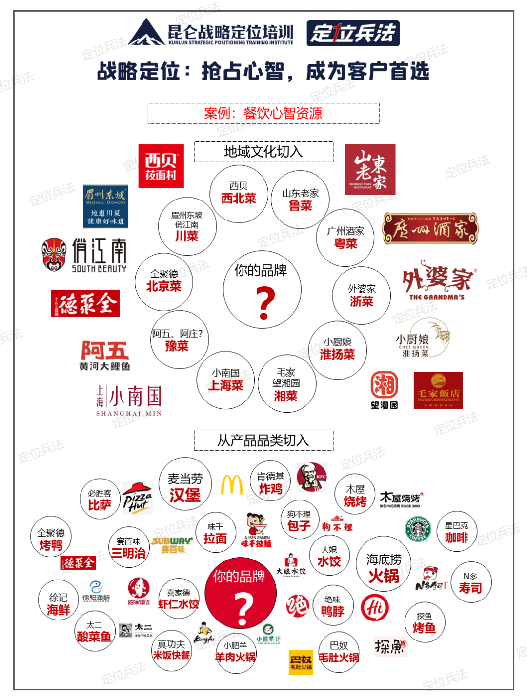 回到话题上,餐饮要做战略定位,要找到消费者如何把餐饮进行分类,消费者今天在什么场景选择吃什么,这个是他们自行分类的(简称品类),而不是你行业进行分类的,所以:不是去向用户强推产品,而是先看用户头脑里面有一个什么样的定位机会(顺应用户认知),在根据这个定位的机会配置资源。