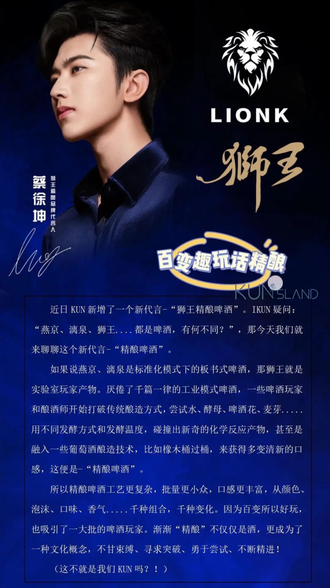 ? 敲敲小黑板,跟随@LIONK狮王精酿啤酒 代言人@蔡徐坤 一起来了解一下啤酒小知识吧!