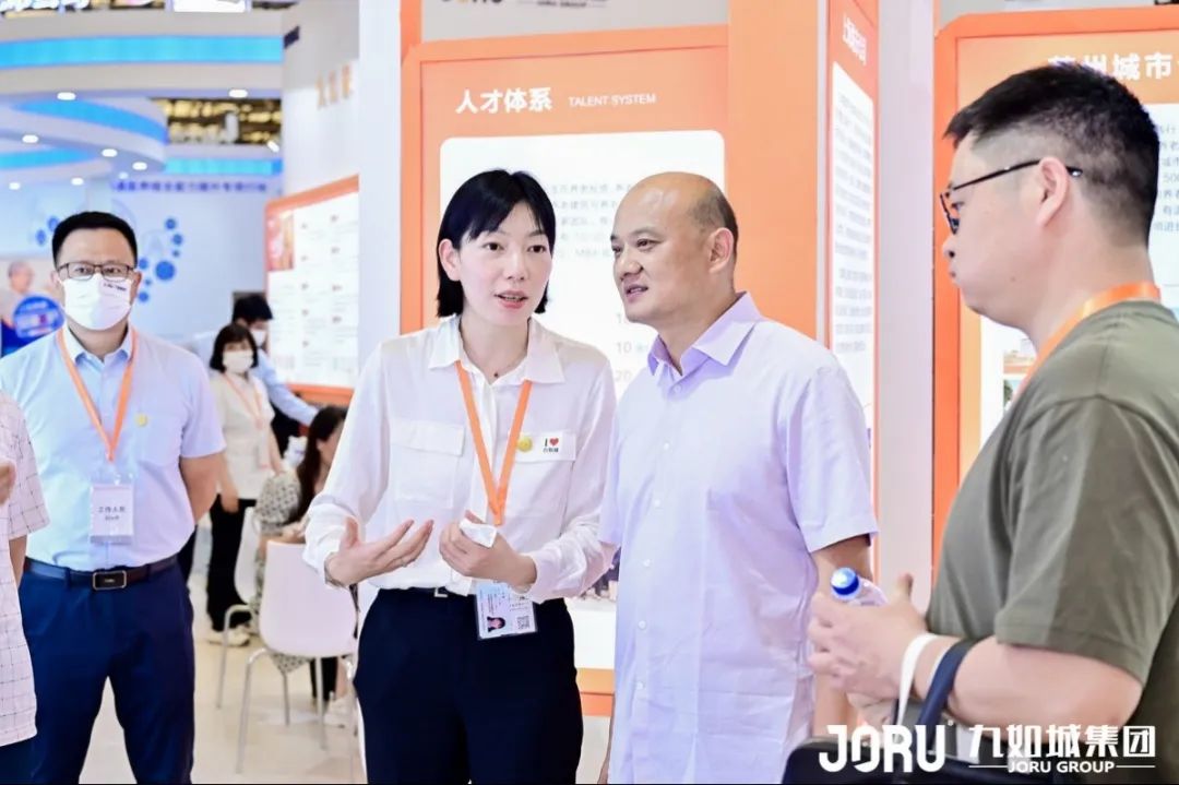 展会期间,各级相关部门领导先后来到九如城展位参观调研,对集团各大板块内容的特色展示印象深刻,纷纷点赞。