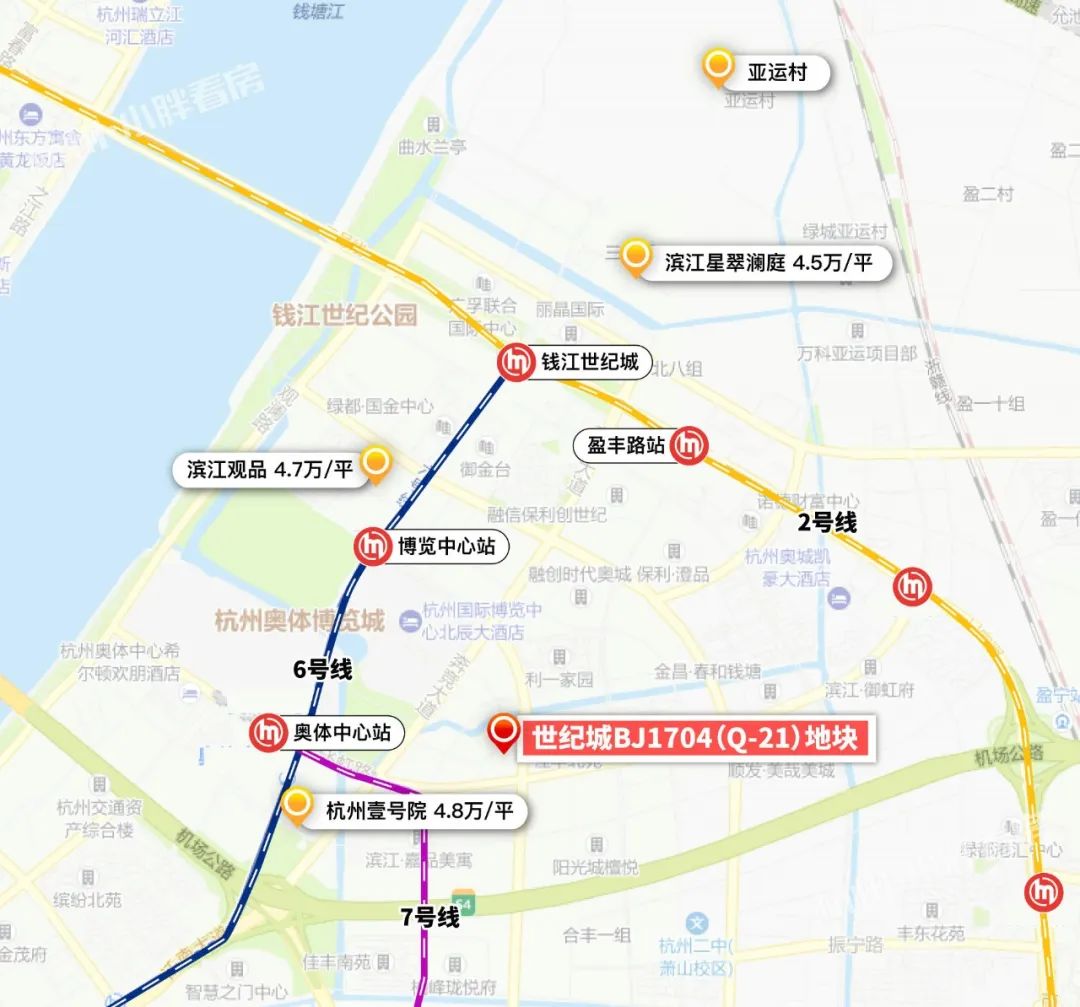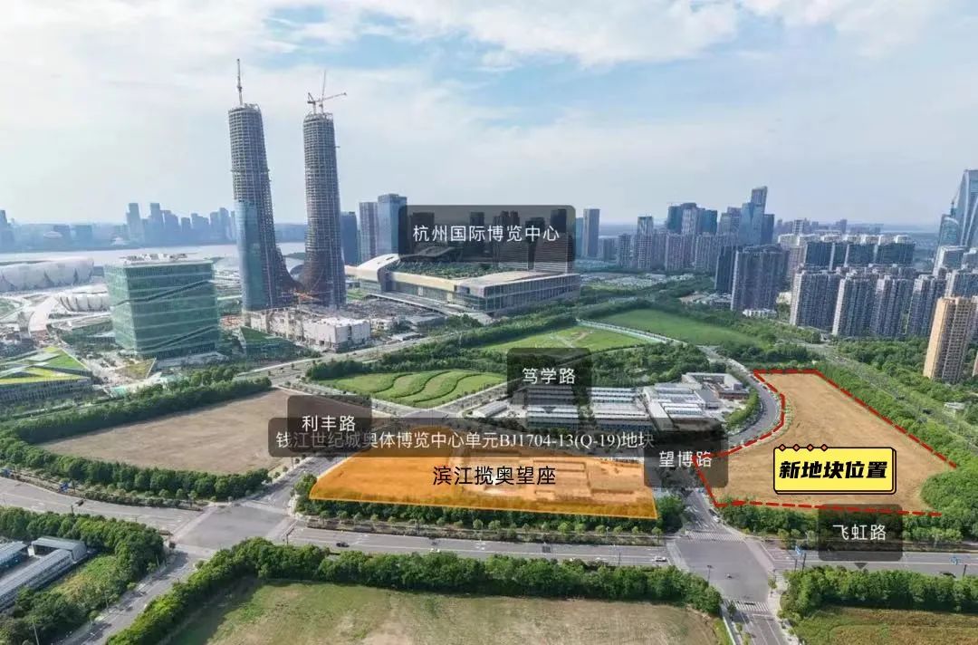 现在,奥体板块继续乘亚运东风向前,房价已经翻了几倍,所以我们看到:就连板块内相对年代老一点的龙湖春江彼岸,也几乎找不到单价低于6万/平的房源;目前奥体板块核心内,无新房可售,已经开盘的的滨江揽奥望座、中粮悦著云轩,均价4.6万/平,摇号记录是这样:中粮悦著云轩:11月底一把梭哈,吸引了3007组家庭登记,差点拼社保!滨江揽奥望座:12月中旬一把梭哈,亮出有房203个月的社保记录,整体中签率7%,五年限售!就是这么一个局面,仍有一大批购房者对这里心向往之。本文,小胖则要为大家奉上一个重磅的:奥体真核心、奥体博览城仅约700米、滨江揽奥隔壁,滨江嘉品斜对面、壹号院不远处,新地块定于6月底出让!地块位置:东至博奥路,南至飞虹路,西至望博路,北至河道基本情况:地块用地性质为住宅用地(R21),用地面积为30800㎡,容积率为2.9。(小胖预计未来能建设7幢左右住宅)