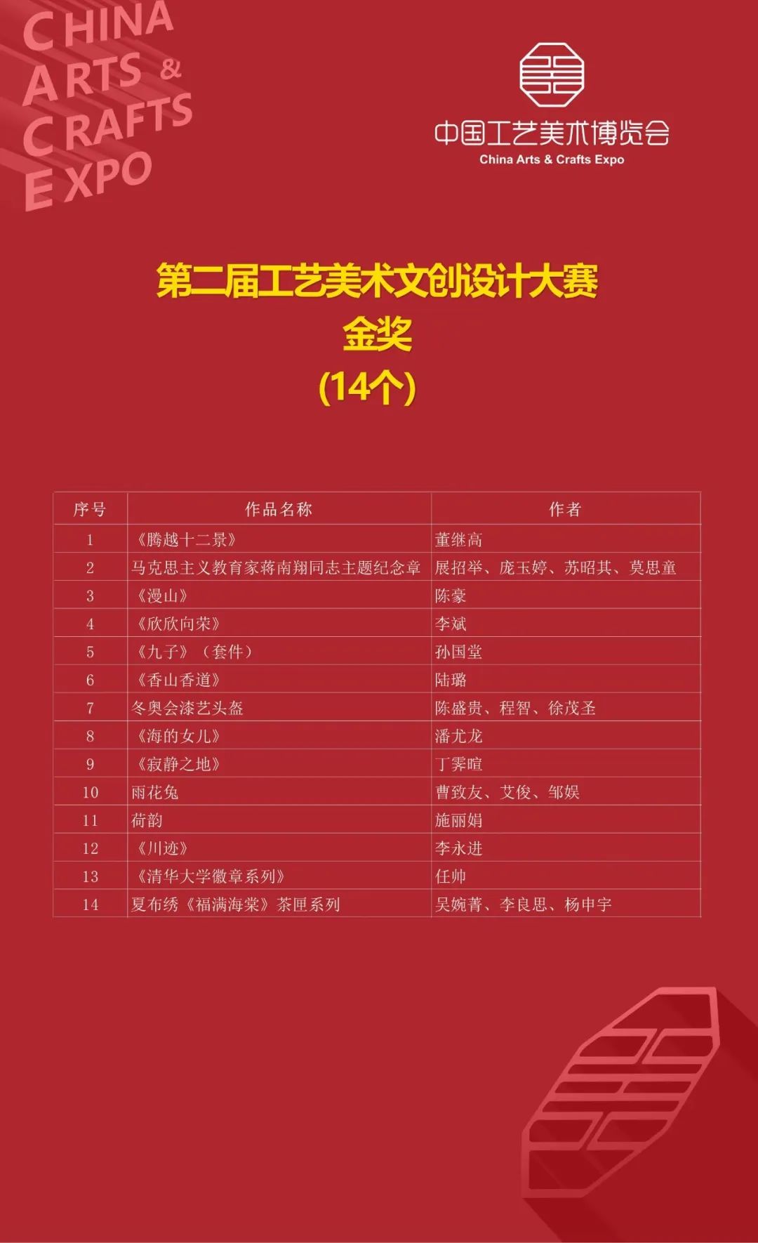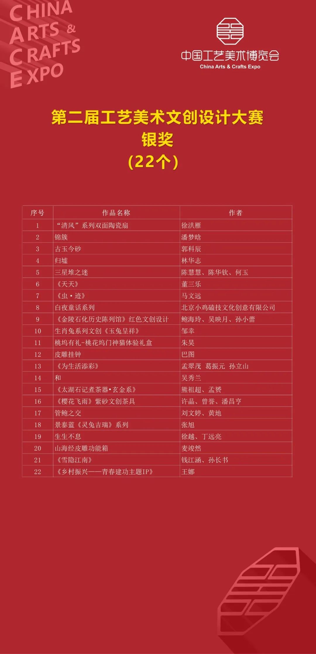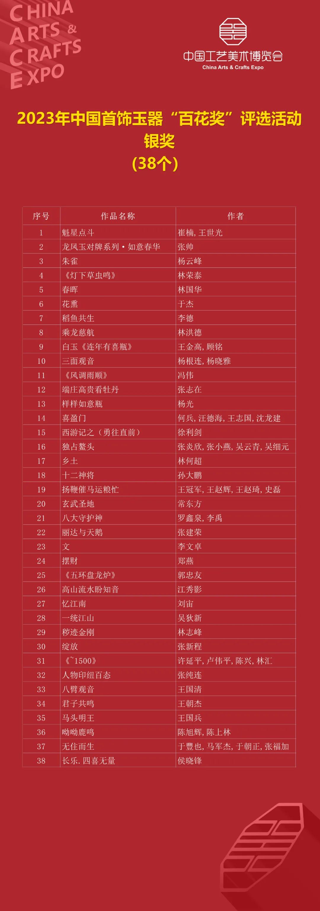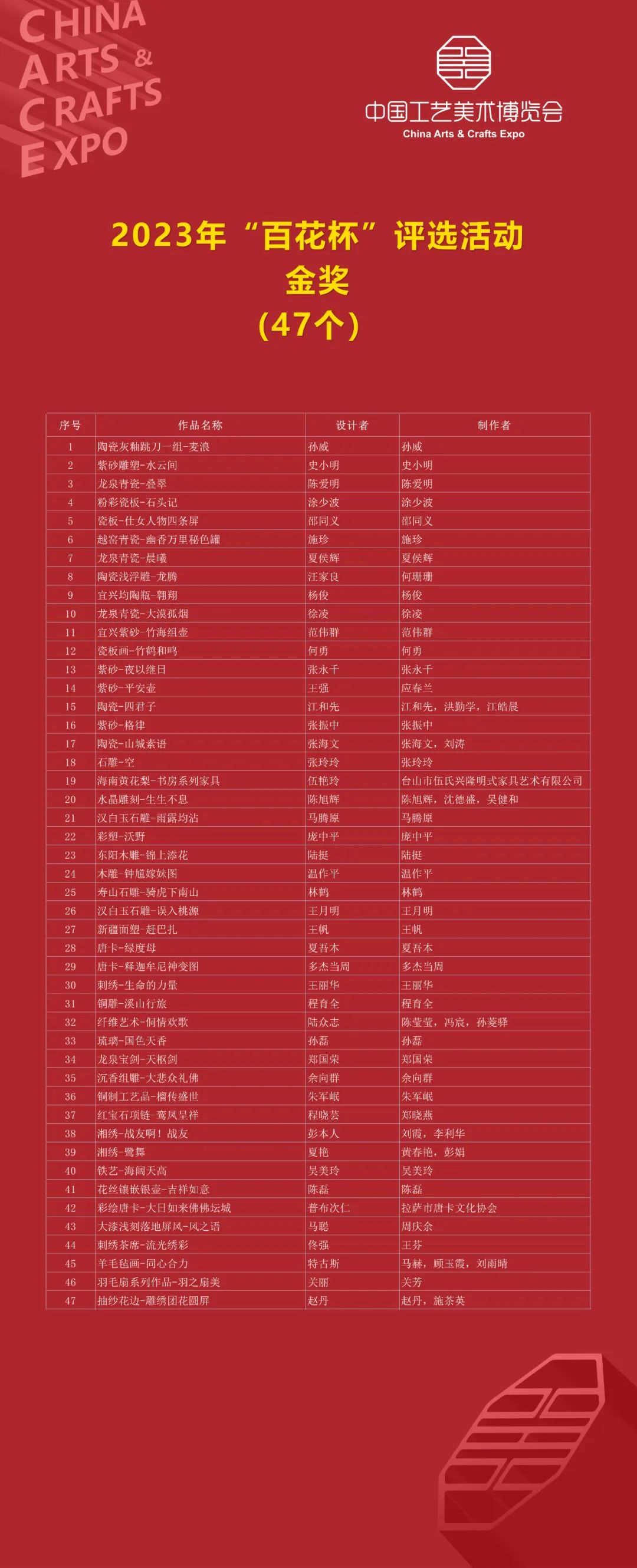 第三届中国工艺美术博览会百鹤杯、百花奖、百花杯、文创设计大赛获奖名单