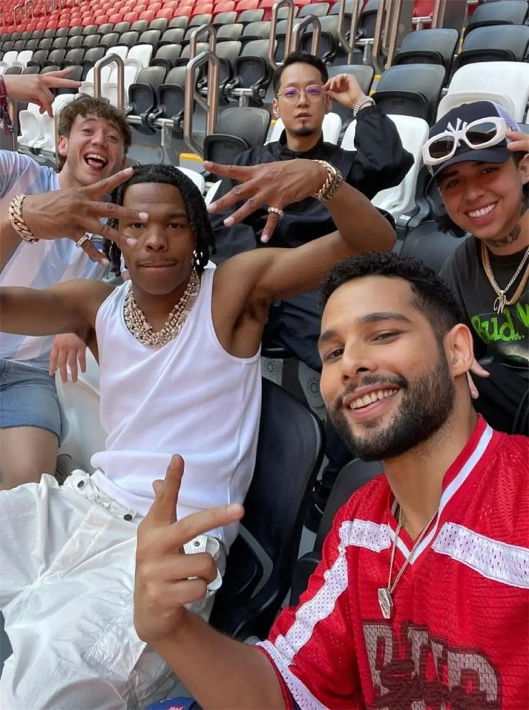 网红们与美国说唱歌手利尔·贝比(Lil Baby)在一起。