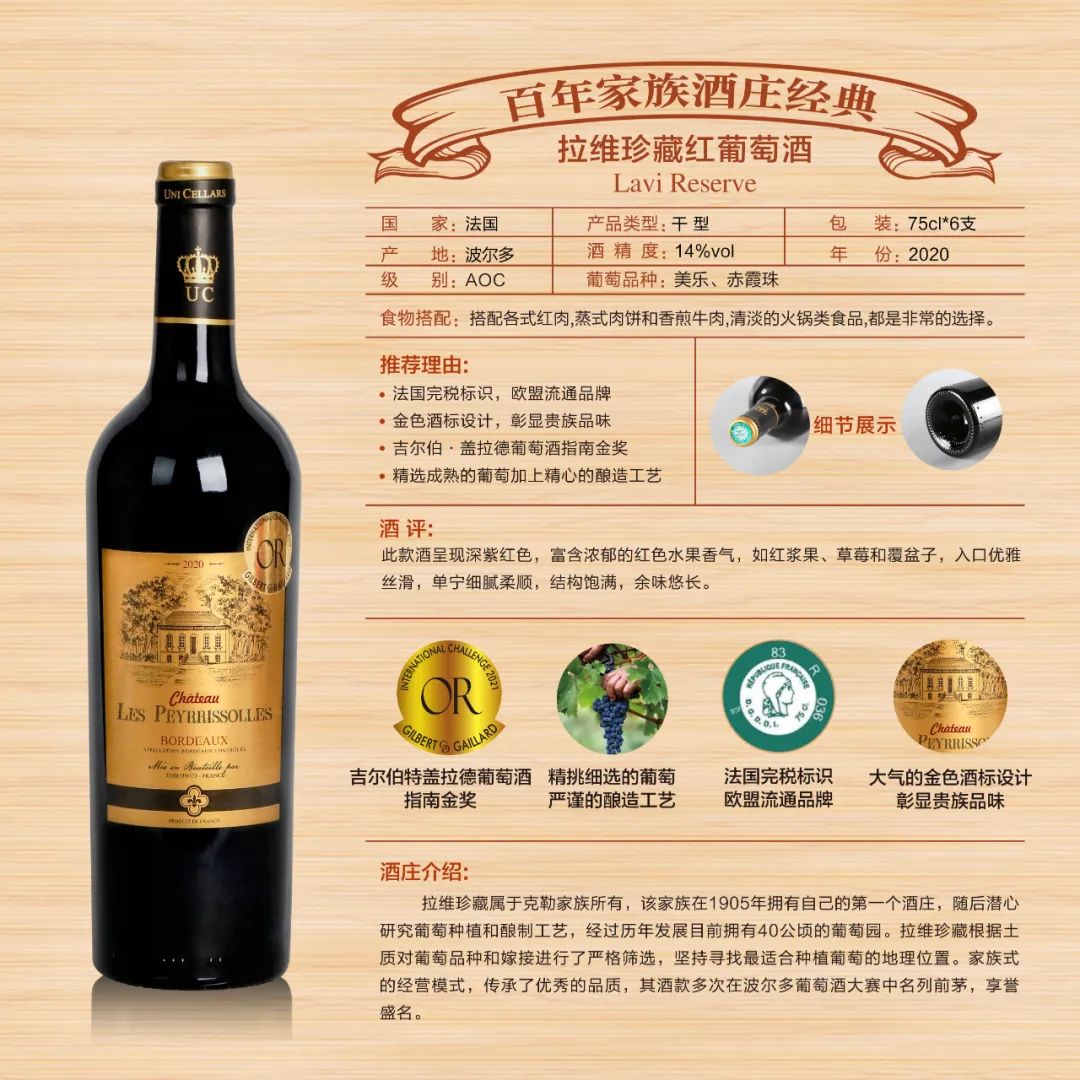 — 拉维珍藏红酒-产品实拍 —