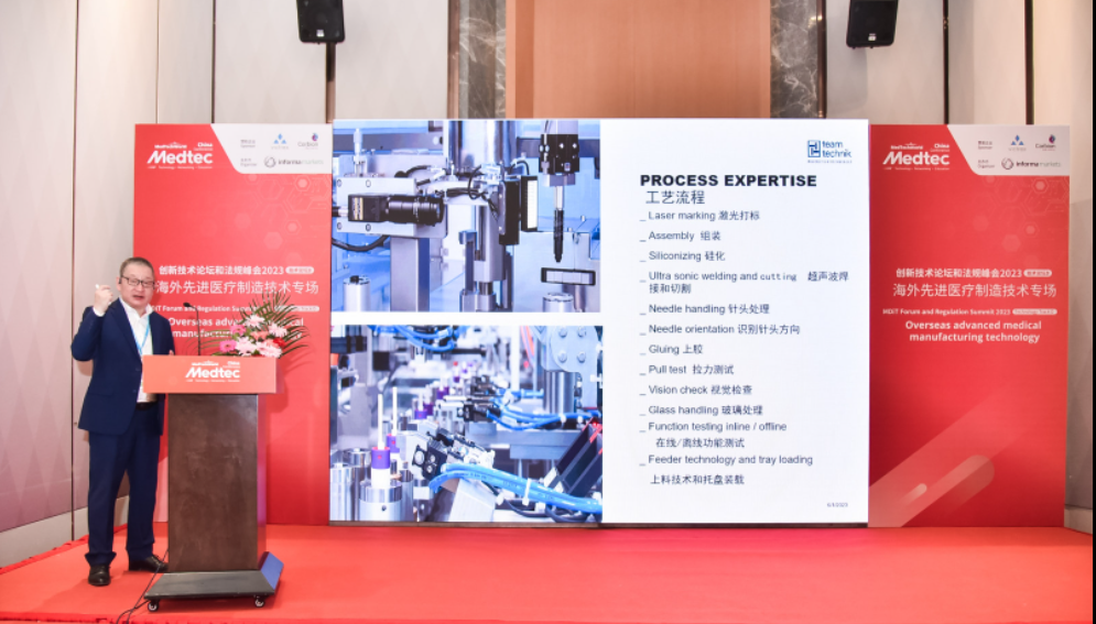 帝目集团的博士首席官徐凌翔在现场分享《全自动给药装置(注射笔、自动注射器) 装配和测试解决方案》,让大家对给药装置的种类及制造工艺有了更深层次的了解,同时还为大家介绍了不同给药装置所对应的组装和检测设备。