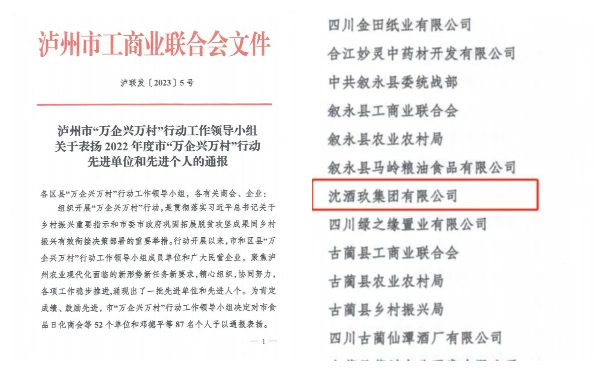 2022年,中国沈酒集团更是被四川省“万企兴万村”行动领导小组列为四川省首批、泸州市唯一“万企兴万村”省级联系点,成为叙永县向林镇棉竹村的结对帮扶企业。