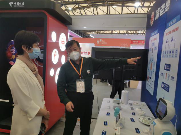 “浦老惠”作为浦东新区民政指导下的养老服务平台,在本届老博会上首次亮相,与中国电信联合打造的养老展位展示了“浦老惠”平台及智慧终端在老年人服务场景中的应用和赋能,展现了智慧养老服务相关产品于老年人生活的便捷易用之处。