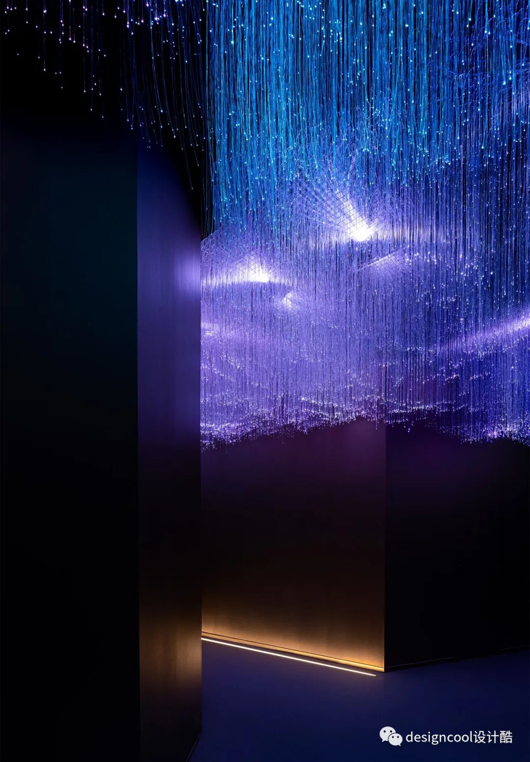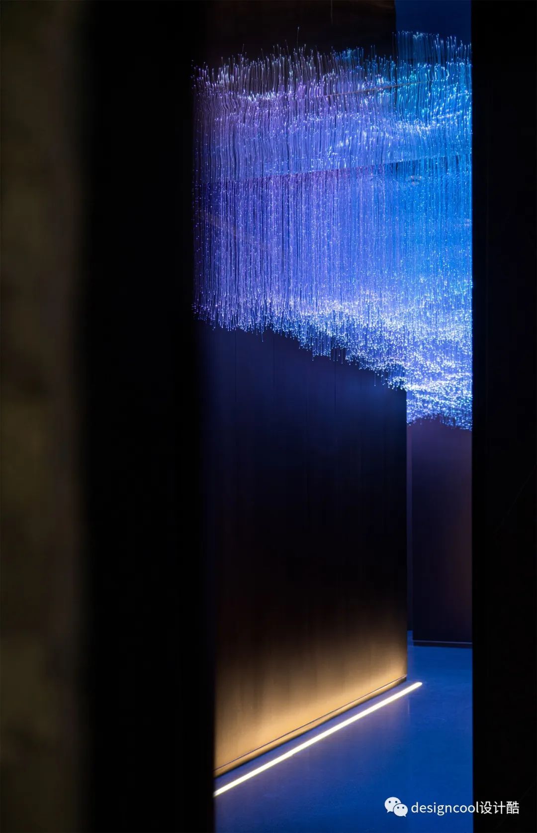 城市、山脉、星空、麦田以抽象形式和空间相遇,设计的“幻术”赋予此时此地,体验感超越了叙述和象征意义——体块劈砍、星图照路,电子海水变幻着色彩在天幕尽头起伏翻涌......自然、城市和人的历史裹挟而来,越过罗森桥在此相交。The city, the mountains, the starry sky and the wheat field meet the space in an abstract way, which is made possible by the magic of design. The experience of exploration transcends any narration or symbolic meaning -- the wall blocks, the star map illuminating the road, the electronic seawater changing colors and undulating...The nature, the city, and human history meet here through the time-space tunnel.