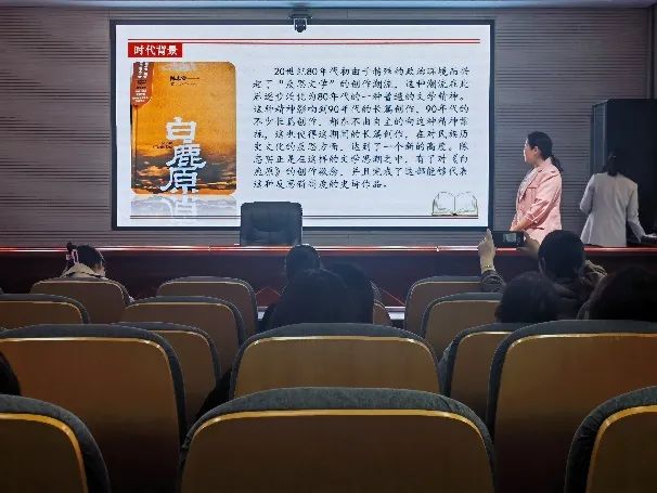 紧接着,苏丽老师分享了《白鹿原》这本书的读书感想,书中在以关中人生存为大的文化背景下,展开了一系列的人物交流活动,带着对精神中“真”的追求写出儒家文化的精髓,并通过文本中人物的个性描写,来宣传中国文化的深刻价值,表达自己“寻根”理念。作者的寻根性思考,并不仅仅停留在以道德的人格追求为核心的文化之根,而是进一步更深刻的揭示出传统文化所展现的人之生存的悲剧性,更为触动大家思考。