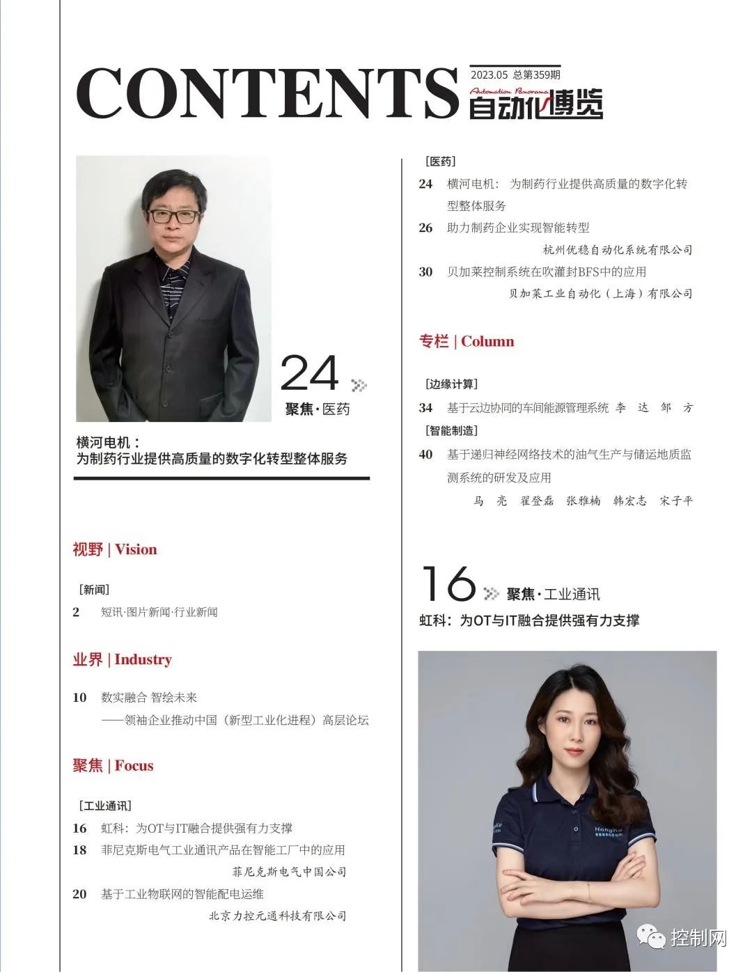 叮咚~ 各位读者期盼的《自动化博览》2023年5月刊已上线,聚焦“工业通讯”、“医药”两大热点主题,菲尼克斯电气、虹科、力控元通、横河电机、优稳、贝加莱等企业参与,此外,还有边缘计算、智能制造、工业信息安全、核电仪控、智慧系统解决方案等专栏,内容丰富,欢迎查阅~