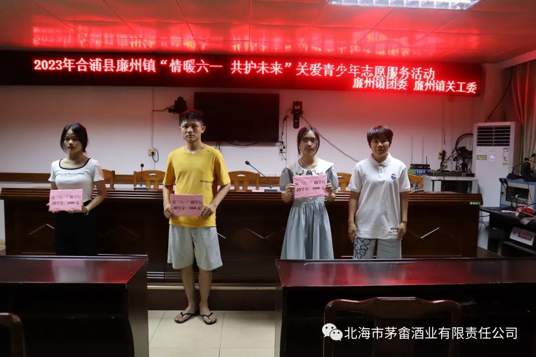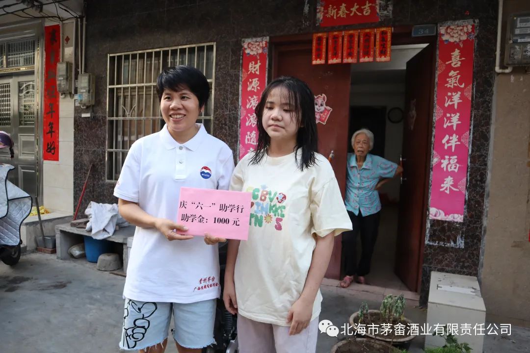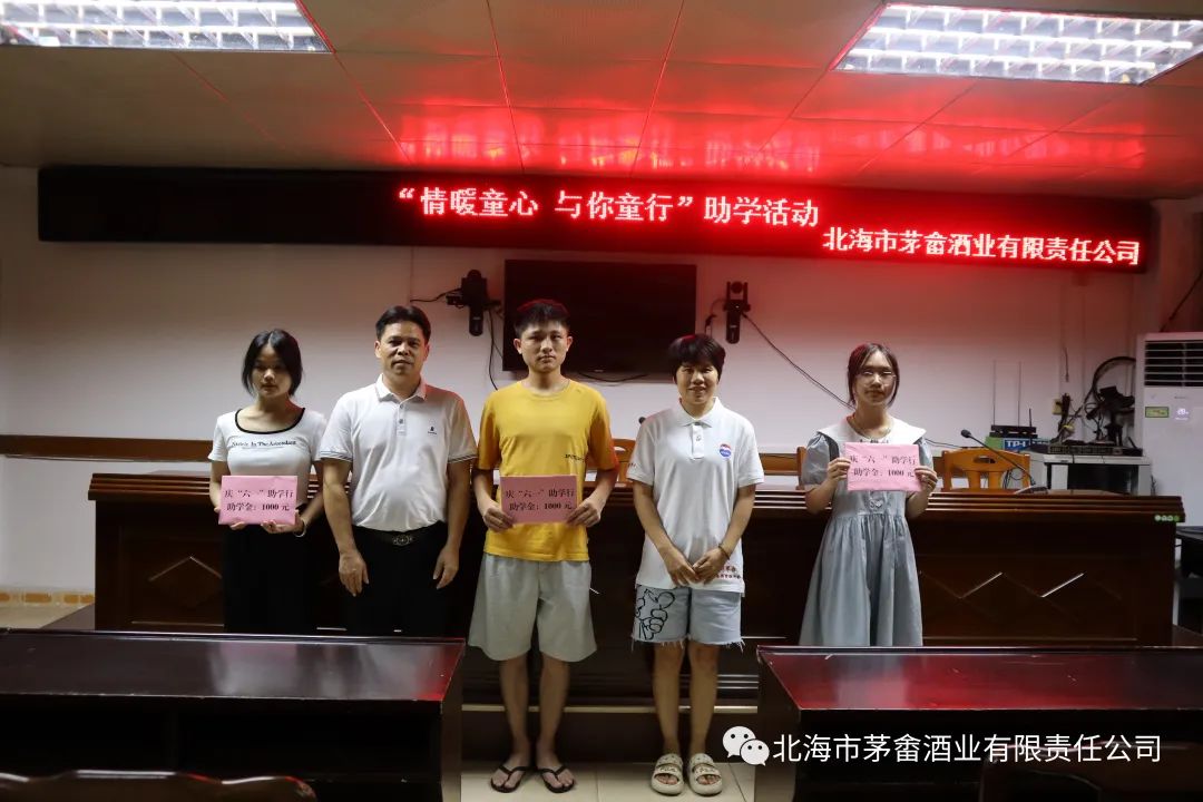 少年儿童是祖国的希望,是民族的未来。为迎接六一国际儿童节到来,北海市茅畬酒业有限责任公司开展以“情暖童心 与你童行”为主题的助学公益活动,向贫困家庭并且品学兼优的5名学生每人发放1000元的助学金,大力弘扬社会良好风尚,不断推动爱心事业发展,为寒门学子点燃励志成才的希望,为广大贫困学生撑起一片蓝天,让更多的少年儿童充分感受的党的关怀和茅台大家庭的温暖。