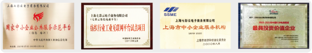 上海七彩云电子商务有限公司成立于2015年5月,由中国印染行业协会和中国染料工业协会联合发起,公司恪守“服务创造价值”的经营理念,致力于服务纺织印染及其产业链相关企业,推动企业数字化营销和数字化服务水平的提升。公司获得了工信部颁发的“国家中小企业公共服务示范平台”、纺织工业联合会颁发的“纺织行业工业互联网平台试点项目”、上海市经信委颁发的“上海市中小企业服务机构”、上海市专精特新企业、EFEC中国产业链与供应链金融联盟颁发的“2020-2021年中国B2B电商领域最具投资价值企业”、工信部颁发的“国家级专精特新小巨人企业服务平台”等荣誉。