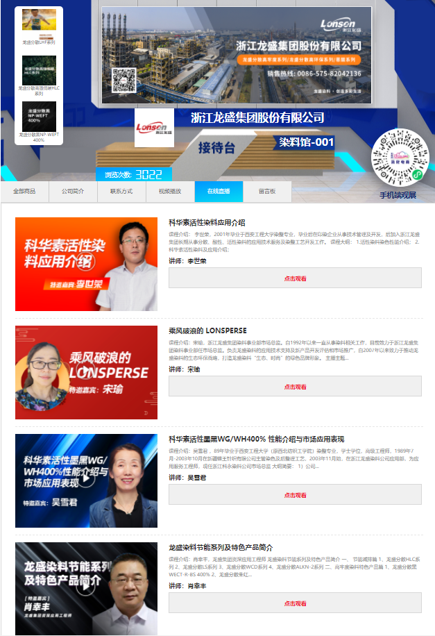 “2022七彩云第三届国际染料和助剂线上展销会”于2022年6月7-17日举行,展会吸引了20余家行业媒体和门户网站报道,吸引了国内外2万多行业从业者观展,合计浏览量日均超过3万人次。展会期间,举办了行业报告、技术论坛、专家讲座和专题报告等近30场直播活动,极大促进了行业从业者的交流学习和商务合作。