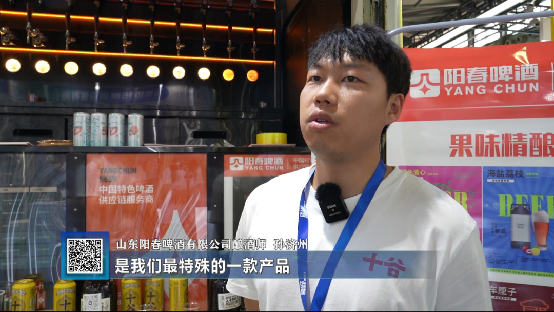 山东阳春啤酒有限公司酿酒师孙济州:我们现在的致力于做中国特色啤酒供应链服务商,解决客户整体对诸多品类、诸多门类的一站式需求。对于这次展会的准备,我们从五月初就开始做了准备,我们还是这个专利的十谷啤酒是我们最特殊的一款产品。除此之外我们也带了诸多的这个生啤,有果味的啤酒,还有一些还原风格的。其实啤酒世界不仅只有一种风格,想让更多的人能接受到这种各个风格的酒,把啤酒的整个世界做的更丰富。
