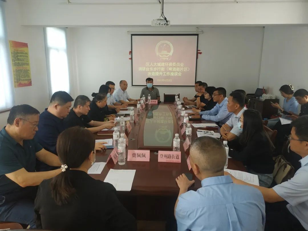 6月2日,区人大常委会副主任徐美丽带领由城建环资专委会委员和部分人大代表组成的调研组,对台东步行街啤酒街片区改造提升工作情况进行了调研。调研组实地查看了中粮大悦城等部分项目建设情况,听取了台东步行街管委会、历史城区管委会和环海湾集团的工作汇报,并与参会的区城管局、区商务局、区文旅局、区综合执法局、规划市北分局、登州路街道办事处的有关负责同志进行了座谈讨论。