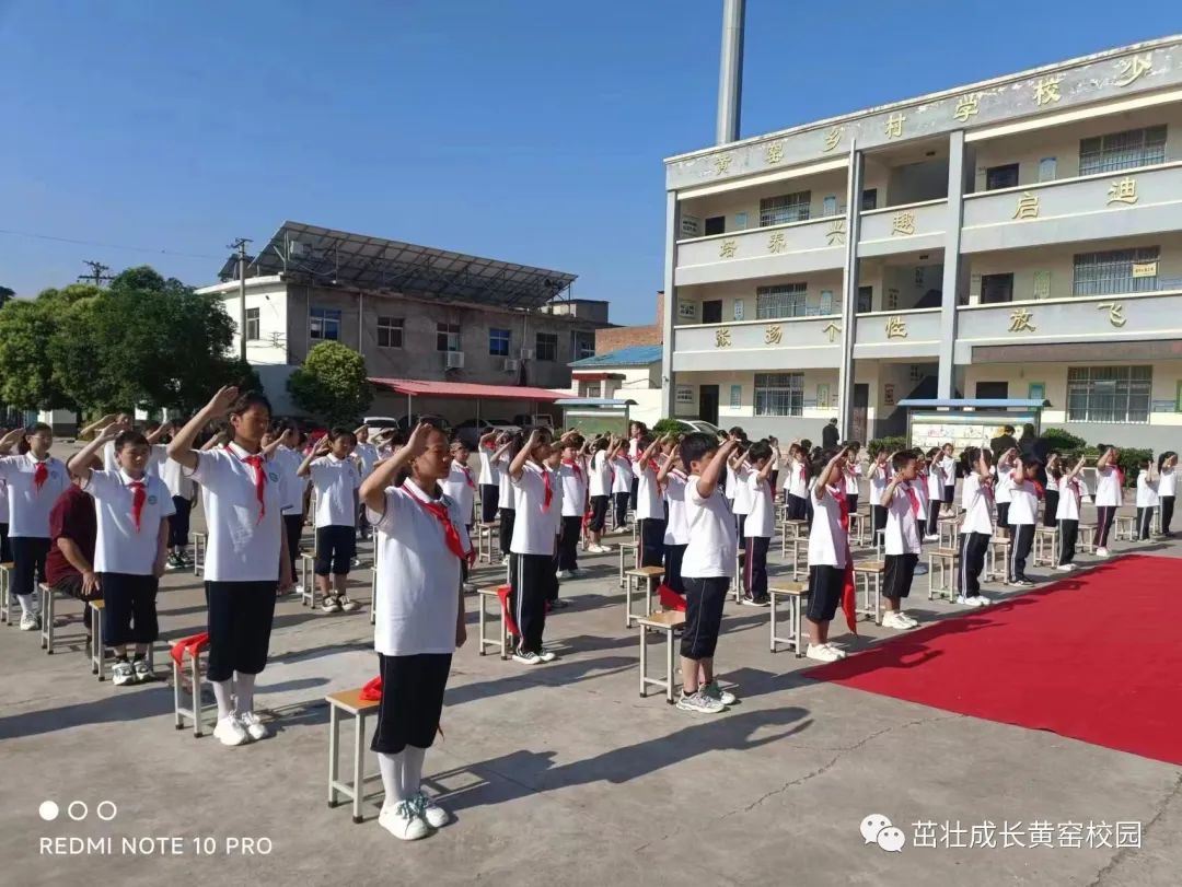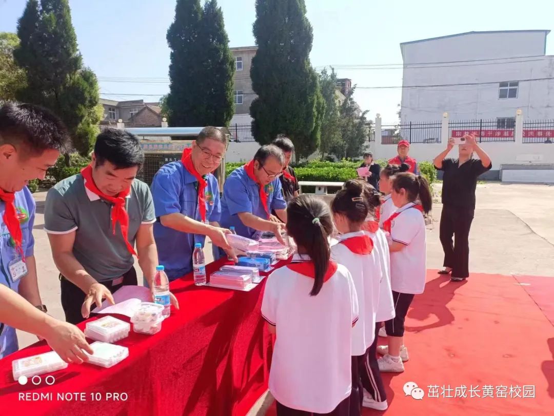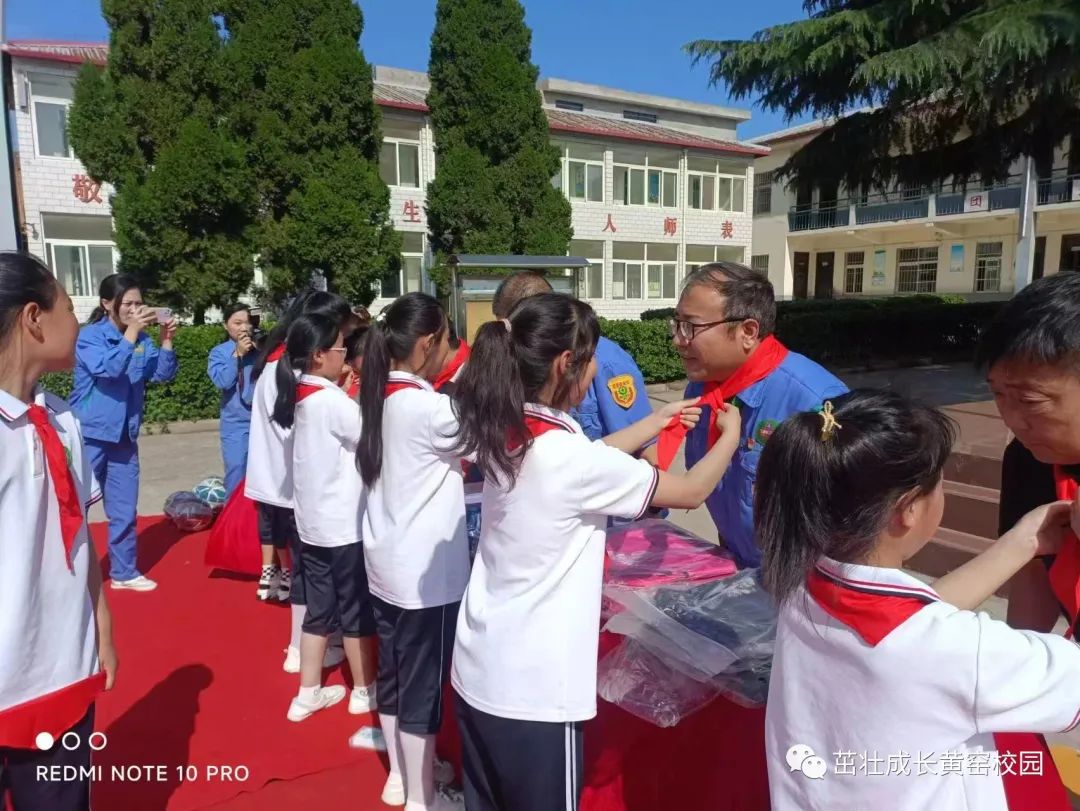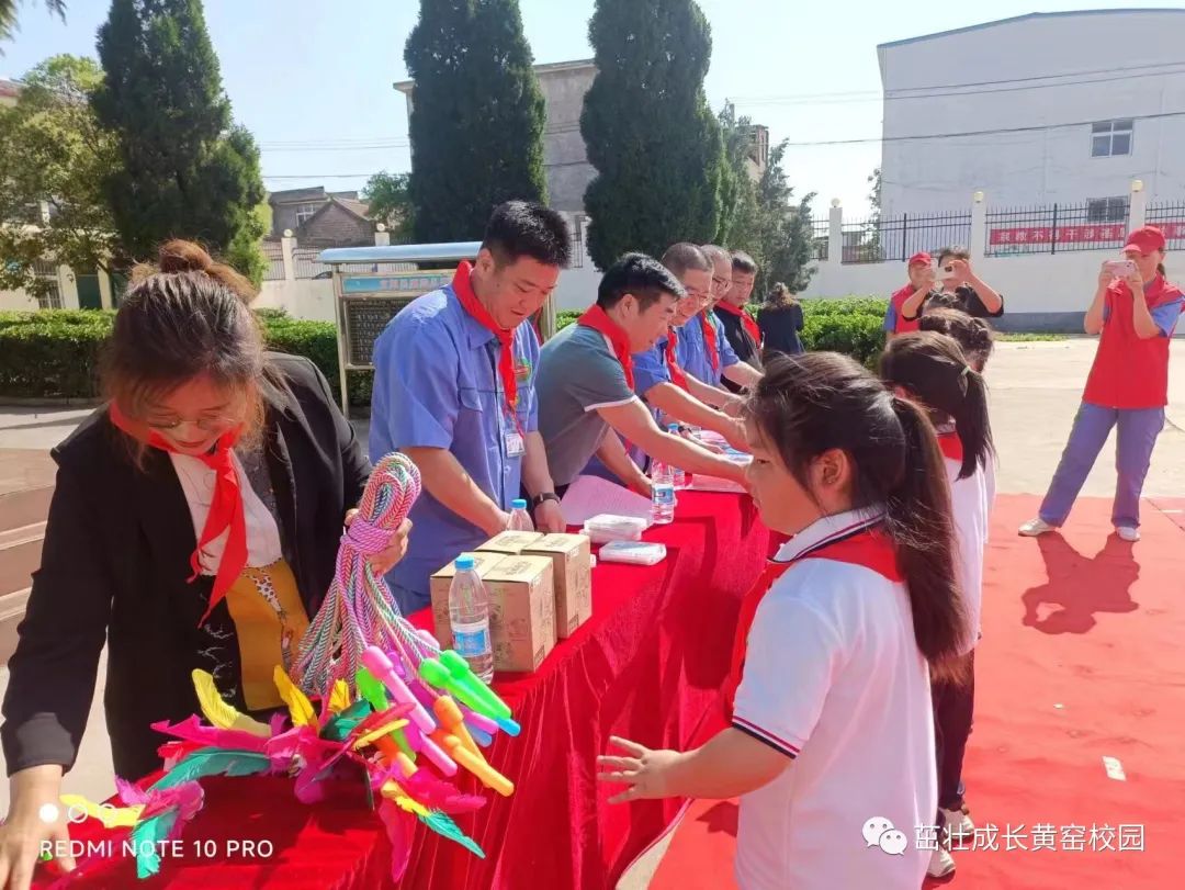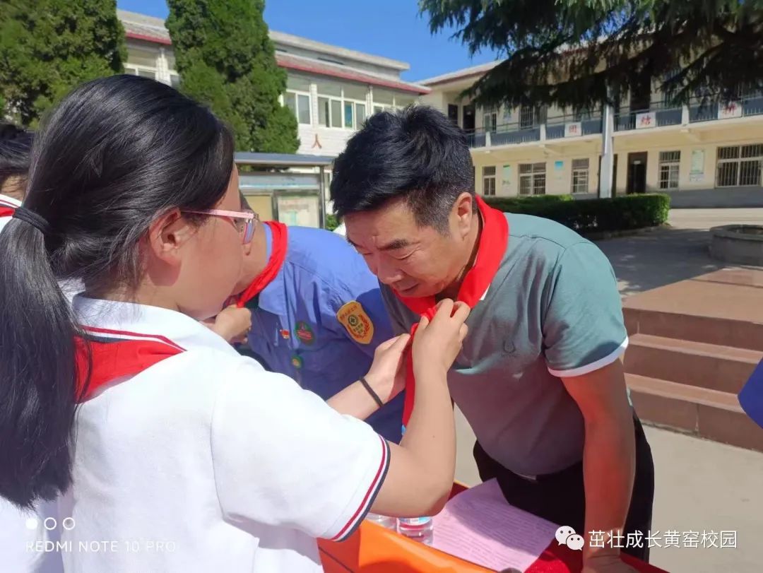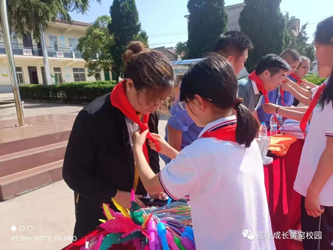 接着,黄窑小学少先队员代表为各位领导敬献佩戴红领巾。