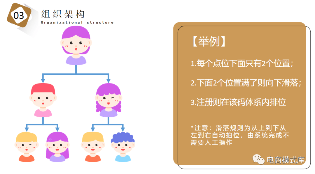 1.在平台购买任意价位商城礼包,即可参与拼团活动;2.开团成为团长,后台将出现6个空位,填满即算拼团成功(包括团长在内一共7人),团长即可获得团队奖励;3. 每个点位下面只有2个位置,下面2个位置满了则向下滑落,注册则在该码体系内排位(滑落规则为直接分享优先,从上到下从左到右自动排位);