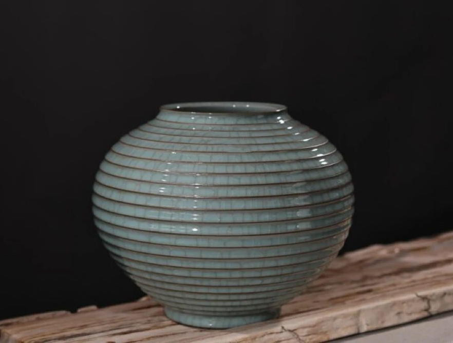 作品名称:《龙泉青瓷—哥窑铁线弦纹罐》