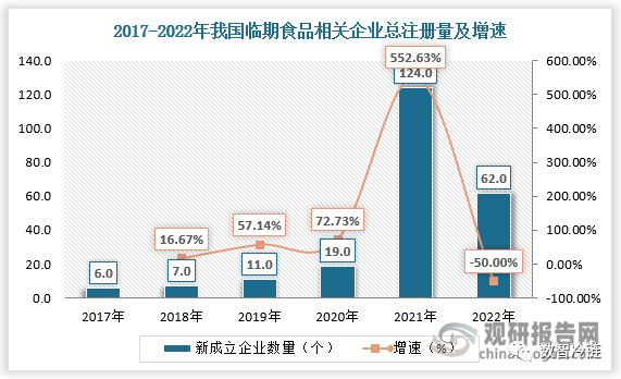 随着行业向好,我国临期食品行业参与者持续增多。数据显示,2021年,我国临期食品相关企业总注册量达124家。2022年,我国临期食品相关企业总注册量达62家,市场竞争加剧。