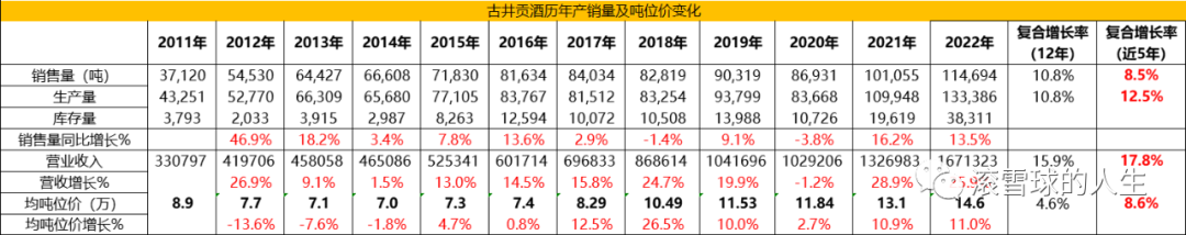 古井贡从2011年至今营收年复合增长率达15.9%,主要由销量贡献年复合增长达10.8%,吨均价复合增长4.6%;从近5年看,由于主推次高端(古8/古16/古20),吨均价增长率达8.6%,22年产量达13.3万吨,产能已明显不能满足发展需求,也印证了扩建的必要性。