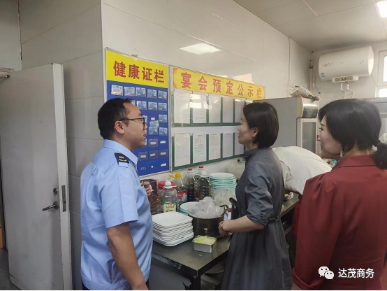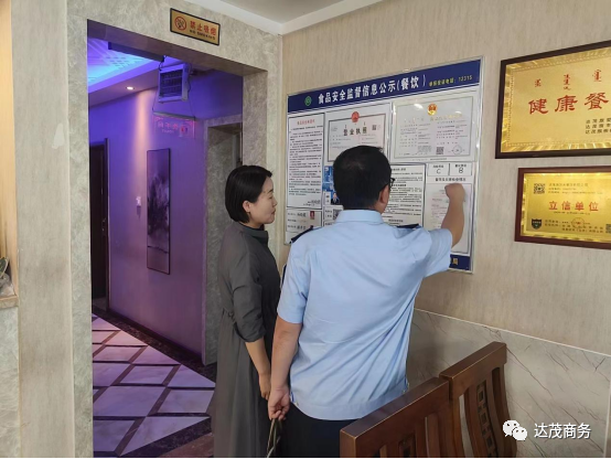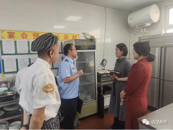 为贯彻落实旗政府和上级部门对安全生产及食品安全工作的安排部署,切实加强餐饮住宿业的安全防范工作,预防和化解重大安全风险,保障我旗餐饮住宿业平稳运行。近日,旗商务局联合市场监管局,由旗商务局党组成员、副局长苏珑高娃带领的联合检查组,在餐饮住宿行业开展市场调研和安全生产督查。检查组先后前往达茂宾馆、万禾大酒店、当代一品酒店、鹿鸣酒店和羽辰假日酒店开展安全生产及食品安全督导检查,现场听取了各企业负责人关于安全工作落实情况汇报;对消防器材配备和管理、餐饮企业燃气报警系统运行、食品食材是否过期和“提倡节约、反对浪费”宣传等情况进行重点检查,对发现的安全隐患和文明就餐方面宣传不到位情况当场指出并要求企业立即整改。