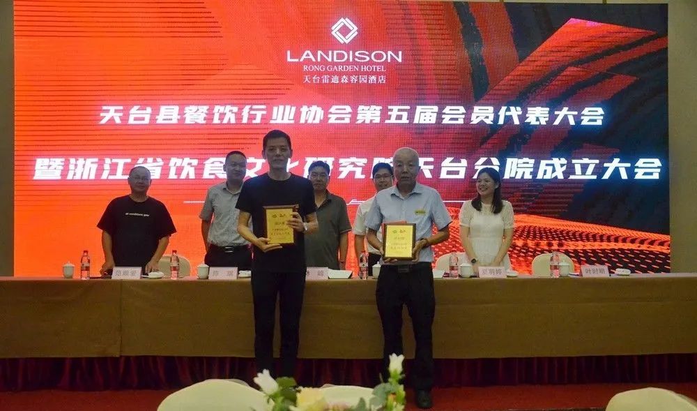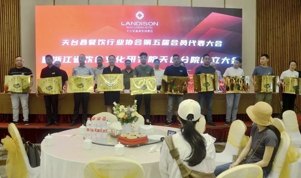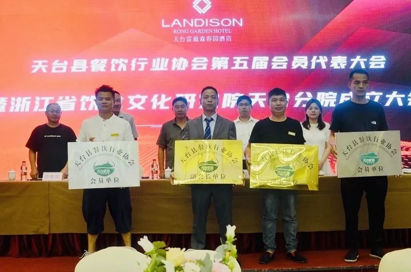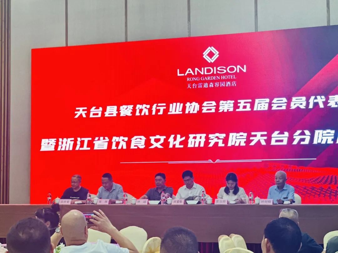 6月2日下午,天台县餐饮行业协会在雷迪森容园酒店召开第五届会员代表大会暨浙江省饮食文化研究院天台分院成立大会。