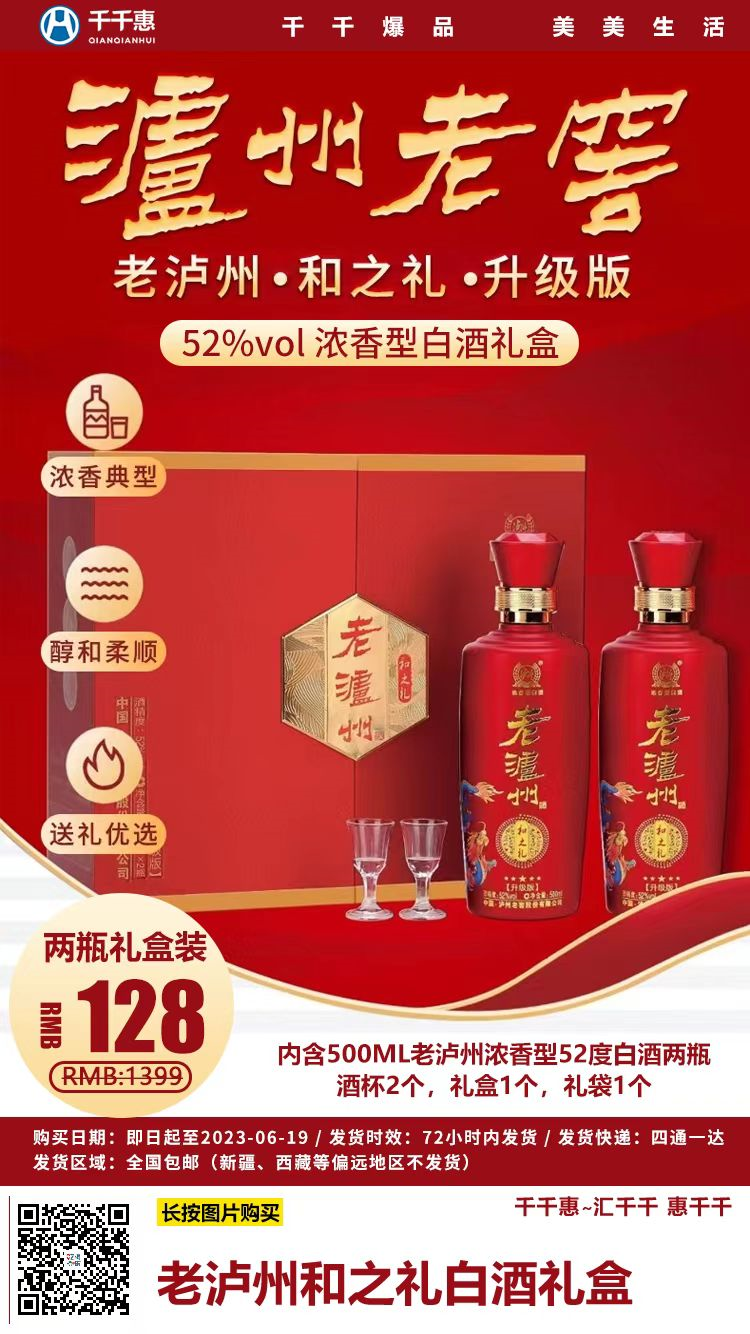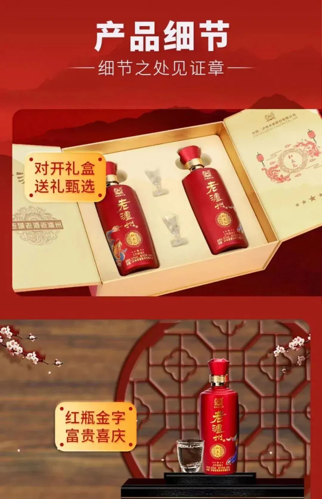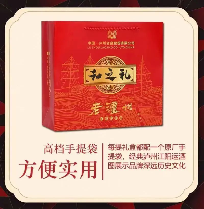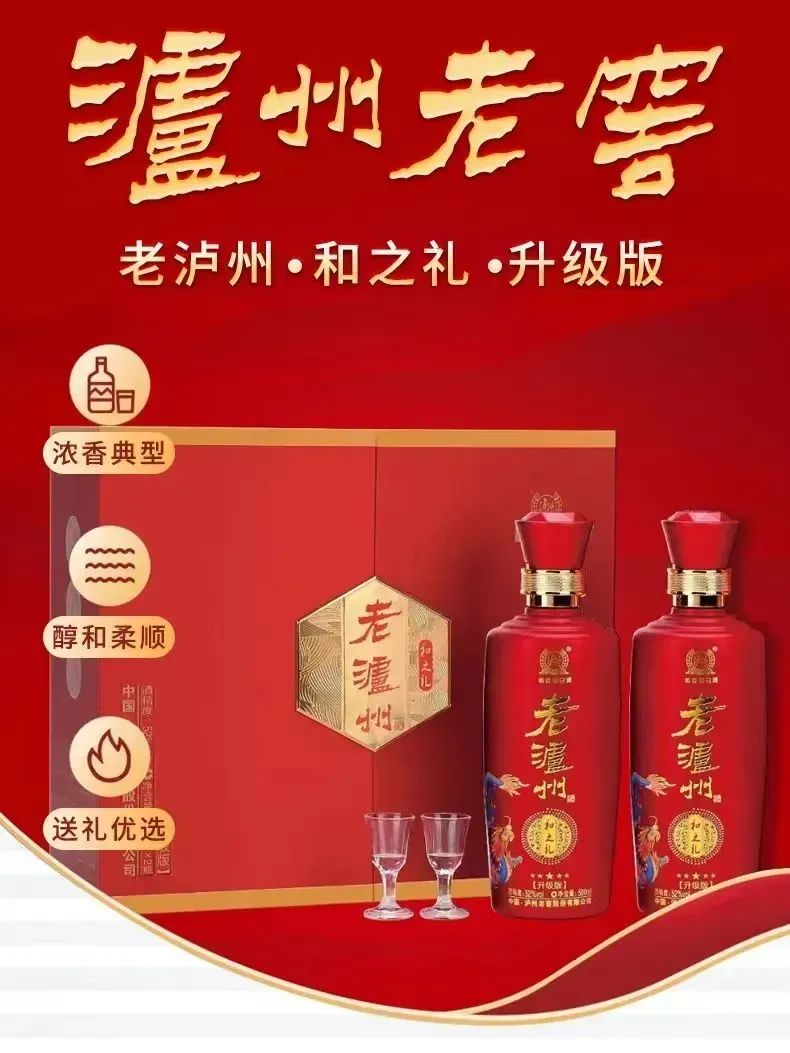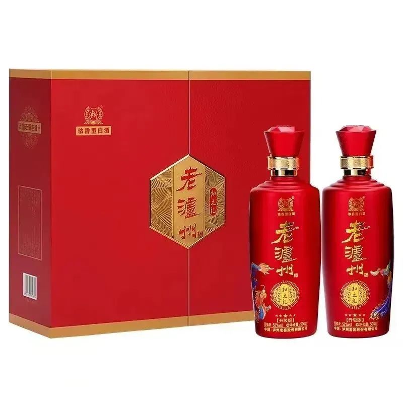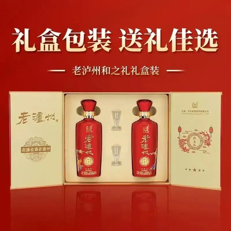 【产品规格】:500ml老泸州浓香型52度白酒两瓶,酒杯2个,礼盒一个,礼袋一个