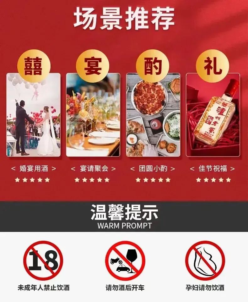 适合商务宴请、婚庆喜宴、老友小聚等场合饮用