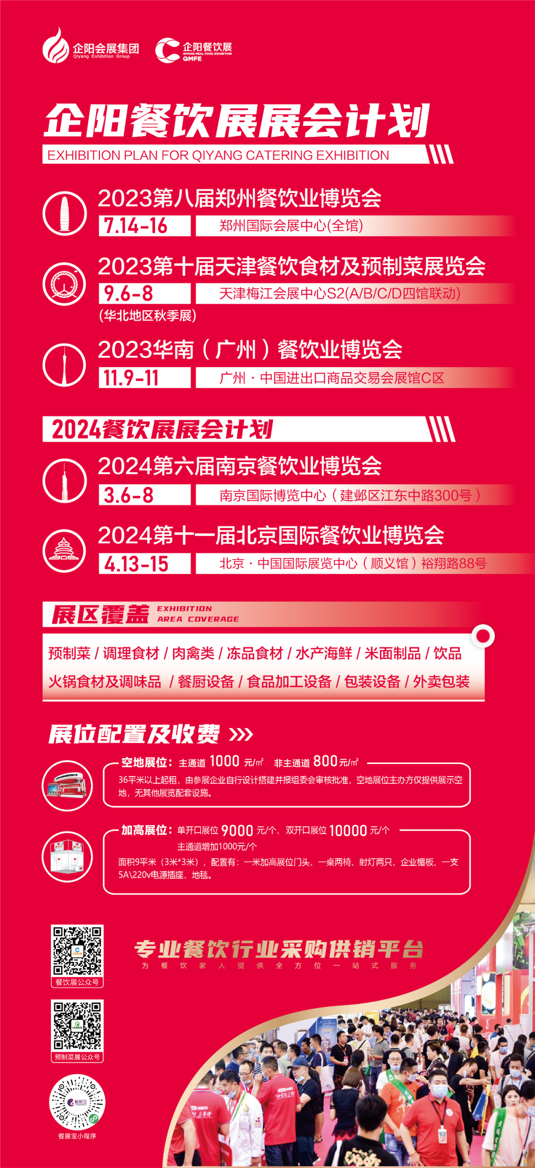 食品相关机械:餐厨用具、外卖包装袋、包装盒、餐厨器皿、火锅桌椅、食材加工机械、包装机械、中央厨房设备、仓储及冷链物流设备、包装材料、检测设备等