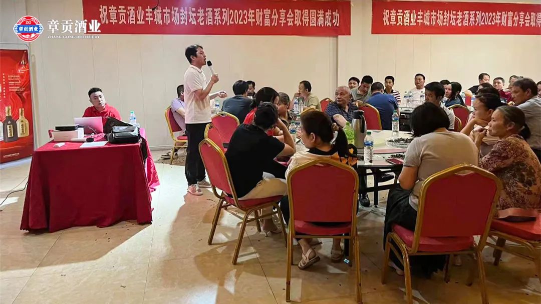 近日,封坛老酒财富分享会在丰城举行,宜春城市公司与50多位经销商及合作伙伴齐聚一堂,共同擘画2023下半年美好蓝图。活动现场气氛火爆,众多经销商打款,现场签约接近100%。此次活动,进一步加深了章贡酒业与经销商及合作伙伴的沟通和交流,为下半年的工作开展奠定基础。厂商一体,携手共赢,章贡酒业将携手经销商及合作伙伴一起,共创新的辉煌。