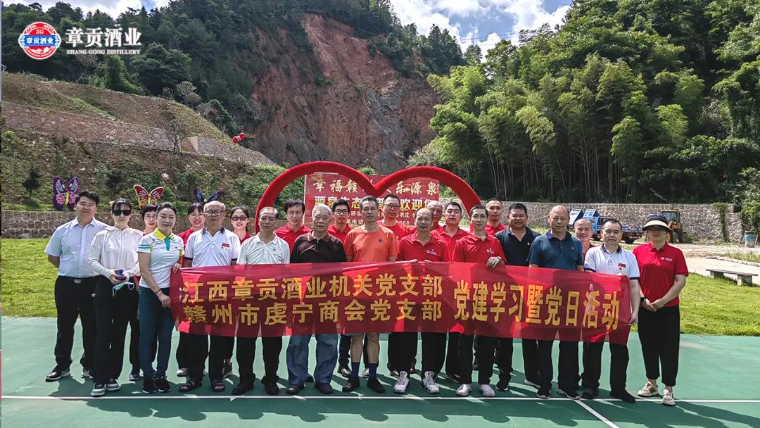 5月27日,章贡酒业机关党支部与赣州市虔宁商会党支部(章贡酒业党建联盟单位)20多名党员,在赣州章贡区源泉生态科普园联合开展党建学习并主题党日活动。两个党支部首先以“3+X”形式开展党建学习,虔宁商会党支部书记张平生同志引领集体经典诵读;章贡酒业党总支副书记兼机关党支部书记罗文民同志领学《中共中央关于在全党深入开展学习贯彻习近平新时代中国特色社会主义思想主题教育的意见》;双方党支部党员代表相互读学重要讲话精神。本次联合主题党日活动,增进了彼此的了解与友谊。大家纷纷表示,要继续加强交流互动、互相支持,共同推进党建联谊,促进非公经济高质量发展。