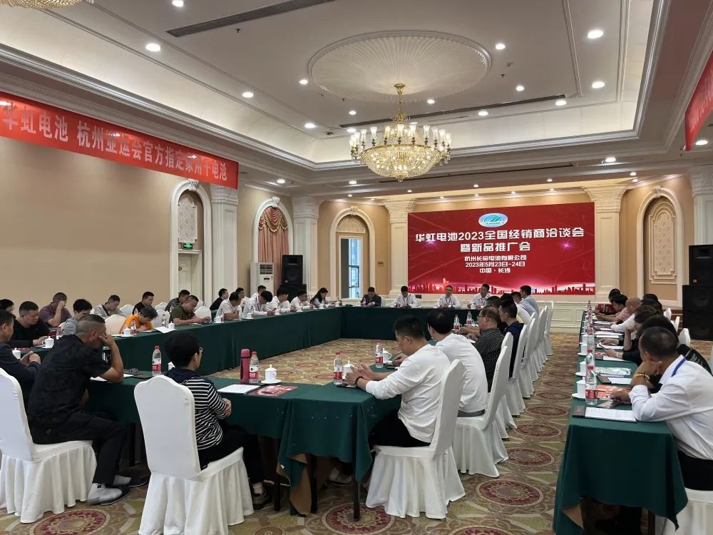 走向全国,走到市场前沿,宣讲“华虹”故事,展示亚运风采,会议向全国客商发出诚挚的邀请,金秋到杭州观赏亚运,今冬再到杭州参加全国经销商大会!华虹电池2023全国经销商洽谈会暨新品推广会圆满落下帷幕!