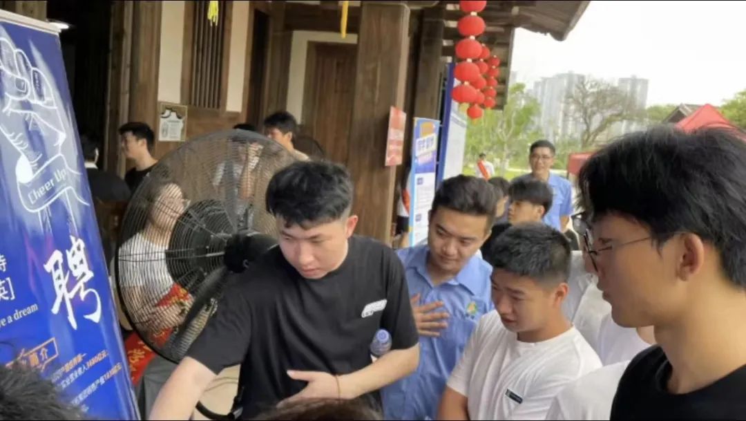 天气炎热也挡不住求职者的热情,招聘会现场门庭若市