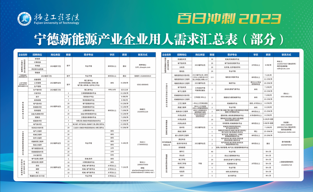 最后,我们把本次宁德新能源企业用人需求汇总表(部分)呈现给大家