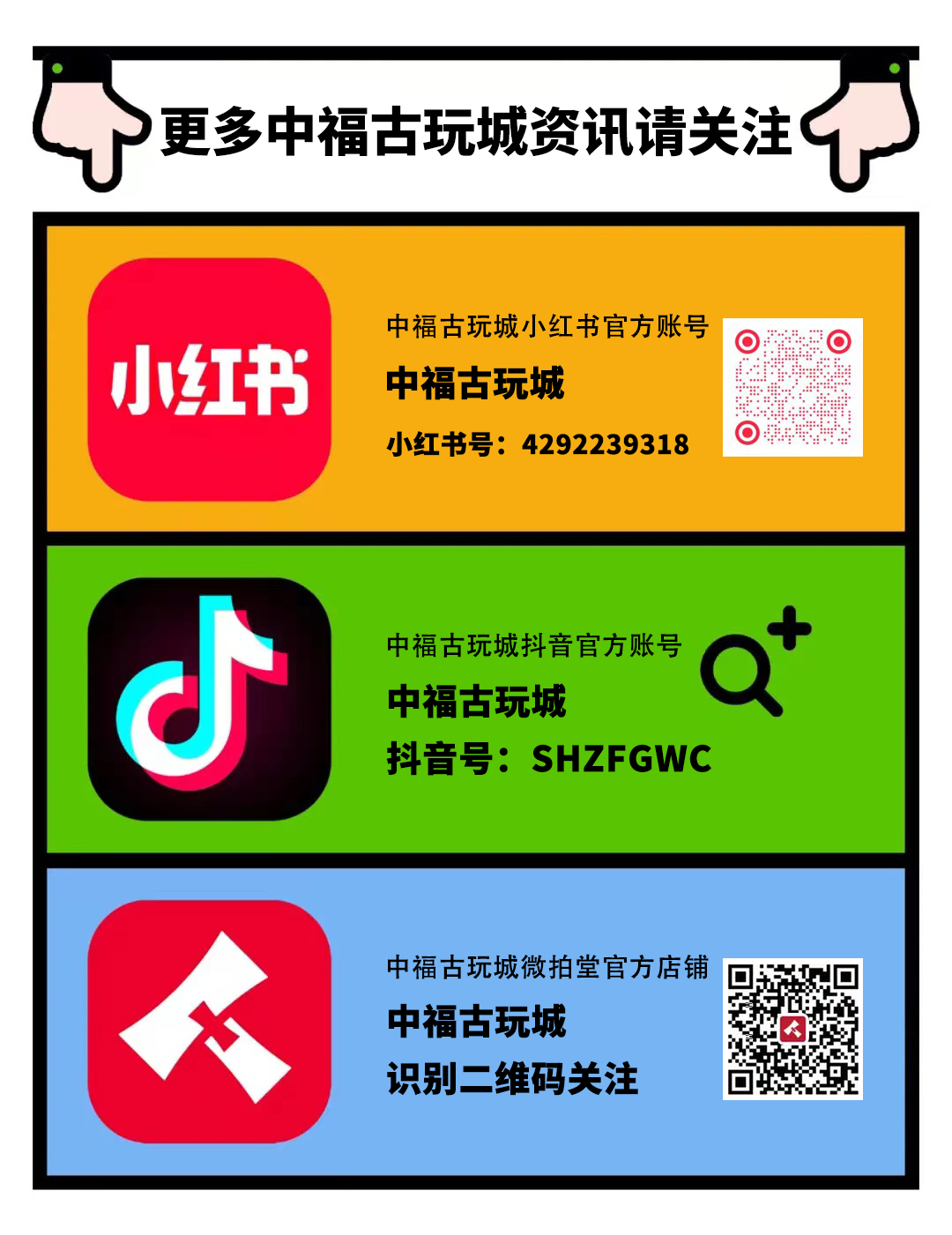 中福古玩城愿与各位参展商、泉友以及国内外热衷邮币卡收藏的藏友一起携手共进,砥砺前行,一起见证邮币卡收藏的美好明天,最后祝上海中福古玩城第七届国际钱币博览会,暨第二届国际钱币宾馆交流会圆满成功”!